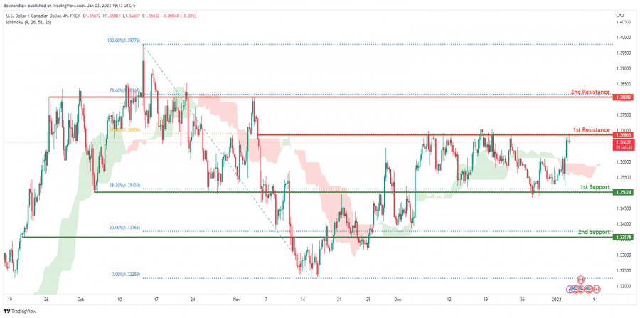 USD/CAD есть потенциал для роста - технический анализ на 04.01.2023ИнстаФорекс - Instaforex, 2 года назад На 4-часовом графике валютной пары USD/CAD настроение трейдеров остается бычьим. В подтверждение этого цена держится выше облака Ишимоку, что также указывает на бычий рынок. Если покупатели сохранят активность на прежнем уровне, цена может пойти в сторону первого сопротивления на отметке 1,36865, где также находится линия Фибоначчи 61,8%. Затем цена направится выше ко второму уровню сопротивления 1,38082, который совпадает с уровнем Фибоначчи 78,6%. При другом развитии событий цена может пробить первую линию поддержки на отметке 1,35029, где расположен уровень Фибоначчи 38,2%, и затем пойти в сторону второй линии поддержки на уровне 1,33578, который совпадает с линией Фибоначчи 20%. Торговые рекомендации: Точка входа: 1,36562 Условия для входа: быстрый вход в покупки позволит попасть в бычий импульс Тейк-профит: 1,38082 Условия для фиксирования прибыли: вторая линия сопротивления Стоп-лосс: 1,35229 Условия для выставления стоп-лосса: последний минимум Материал предоставлен компанией InstaForex - www.instaforex.com |