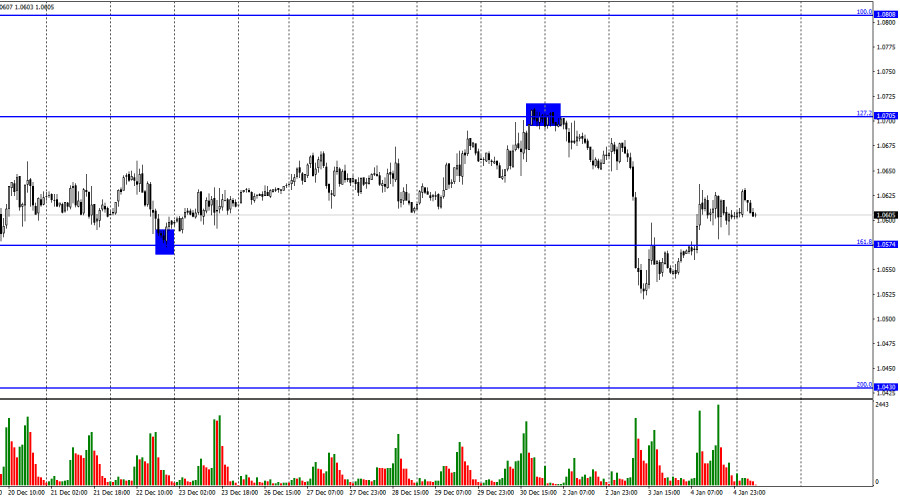 EUR/USD. 5 января. ЕЦБ собирается значительно повысить ставки в феврале и марте.ИнстаФорекс - Instaforex, 2 года назад Добрый день, уважаемые трейдеры! Пара EUR/USD в среду продолжала процесс роста и выполнила закрепление над уровнем коррекции 161,8% - 1,0574. Таким образом, рост котировок евровалюты может быть продолжен в направлении следующего уровня Фибо 127,2% - 1,0705. Однако я считаю, что более вероятен вариант с новым падением пары евро-доллар. Закрепление курса пары под уровнем 1,0574 повысит вероятность роста американской валюты. Информационный фон вчерашнего дня был достаточно скудным. Я могу отметить только индекс деловой активности в секторе услуг Евросоюза, который неожиданно вырос с 48,5 до 49,8, а также индекс деловой активности в производственном секторе США ISM, который продолжил снижение с 49,0 до 48,4. Таким образом, рост европейской валюты был оправдан вчера, так как об отчета оказались в пользу трейдеров-быков. Помимо этого, член совета управляющих ЕЦБ Мартин Казакс дал интервью Bloomberg, в котором заявил, что регулятор собирается в феврале и марте значительно повысить процентную ставку. На мой взгляд, речь идет о еще двух повышениях ставки на 0,50%, так как зачем нужно было замедлять темпы ее роста в декабре, чтобы ускорить их в феврале? Таким образом, «значительное повышение» может на самом деле оказаться не таким уж и значительным. Тем не менее, для евровалюты такой фон может оказаться весьма кстати. Также Казак заявил, что шаги могут стать со временем меньше, так как ЕЦБ находится в поиске оптимального уровня ставки для снижения инфляции до 2%. Однако в январе заседаний центральных банков не будет, поэтому трейдеры отметили слова Казакса небольшими покупками евровалюты, но сосредоточены в данное время на других данных. Евро укрепился в среду, но сегодня вполне может возобновить свое падение. На 4-часовом графике пара выполнила разворот в пользу американского доллара и закрепление под уровнем Фибо 100,0% - 1,0638. Само по себе закрепление под этим уровнем не имеет статуса сигнала, но мы помним, что на часовом графике пара выполнила закрытие под боковым коридором, поэтому процесс падения может быть продолжен в направлении следующего уровня коррекции 127,2% - 1,0173. Отчет Commitments of Traders (COT):