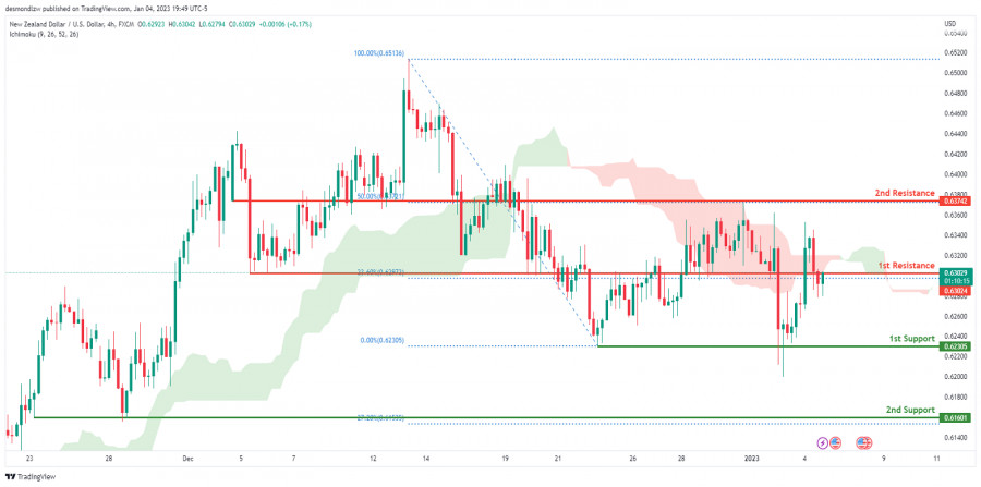 NZD/USD под давлением медведей - технический анализ на 05.01.2023ИнстаФорекс - Instaforex, 2 года назад На 4-часовом графике валютной пары NZD/USD преобладает медвежий настрой. Цена опустилась ниже облака Ишимоку, что указывает на медвежий рынок. Если падение пары продолжится, цена может пробить первую линию поддержки на отметке 0,62305, где также расположен предыдущий локальный минимум. Затем котировка пойдет дальше в сторону второй линии поддержки на отметке 0,61601, где расположен уровень Фибоначчи 27,2%. При другом сценарии цена может снова двинуться вверх по направлению к первой линии сопротивления на уровне 0,63024. Там же расположен уровень Фибоначчи 23,6%. Следующей целью для пары выступит вторая линия сопротивления на отметке 0,63742, которая совпадает с уровнем Фибоначчи 50%. Торговые рекомендации: Точка входа: 0,63024 Условия для входа: входить в сделку на продажу с отложенным лимитным ордером для повторного тестирования первой линии сопротивления Тейк-профит: 0,61601 Условия для фиксирования прибыли: вторая линия поддержки Стоп-лосс: 0,63742 Условия для выставления стоп-лосса: вторая линия сопротивления и последний локальный максимум Материал предоставлен компанией InstaForex - www.instaforex.com |