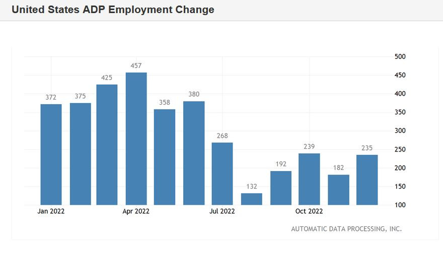 EUR/USD. Антирекорд американских конгрессменов, снижение фондового рынка и ожидание НонфармовИнстаФорекс - Instaforex, 2 года назад Покупатели и продавцы пары eur/usd на этой неделе поочередно перехватывают инициативу. Например, во вторник медведи организовали достаточно мощный прорыв, снизившись от отметки 1,0685 до 1,0520. На следующий день, то есть в среду, быки отвоевали часть утраченных позиций, вернувшись в область 6-й фигуры. Но удержать занятую высоту не смогли: уже в четверг цена снова резко снизилась к основанию 5-й фигуры. Такие ценовые «качели» говорят о том, что и покупатели, и продавцы eur/usd не уверены в своих силах. Ведь, несмотря на относительно высокую волатильность, толку от неё немного, так как пара фактически топчется на месте, кружась вокруг отметки 1,0600. Стороны поочерёдно выигрывают раунды, но при этом не могут обозначить своё бесспорное право на развитие тренда. Для развития северного движения покупателям необходимо преодолеть уровень сопротивления 1,0700 и закрепиться в рамках 7-й фигуры. И наоборот, для возобновления южного наступления продавцам нужно не только продавить уровень поддержки 1,0500, но и обозначить свои позиции в области 4-го ценового уровня. В таком случае можно будет говорить о новом ценовом эшелоне 1,0250-1,0450, который в перспективе может открыть дверь к уровню паритета. Впрочем, до этого ещё очень далеко. «Южный порывчатый ветер» возникает спонтанно, и также внезапно угасает. Но для устойчивого ценового движения необходима столь же устойчивая «погода» – то есть соответствующий фундаментальный фон. Протокол декабрьского заседания ФРС не справился с этой задачей, хотя многие эксперты делали ставку на этот релиз, предполагая, что он усилит или же ослабит позиции гринбека. Опубликованный документ действительно оказался ястребиным (члены ФРС фактически исключили вариант снижения ставки в 2023 году), но доллар весьма флегматично на него отреагировал. Во-первых, «минутки» ФРС не ответили на главные для долларовых быков вопросы: готов ли регулятор сделать паузу в повышении ставки и готов ли ЦБ пересмотреть в сторону понижения финальную точку текущего цикла ужесточения ДКП (если инфляция и дальше будет замедляться). Федрезерв аккуратно обошёл эти «неудобные вопросы» стороной, сохранив здесь определённую интригу. Плюс ко всему, доллар оказался под давлением производственного индекса ISM, который был обнародован за несколько часов до публикации протокола. Индикатор продолжает последовательно сползать вниз, обновляя всё новые минимумы (декабрьский показатель вышел на отметке 48,4 – это самый слабый результат с мая 2020 года). Впрочем, как уже было сказано выше, в четверг продавцы eur/usd снова переломили ситуацию в свою пользу. Пара в период американской сессии стремительно снизилась к уровню поддержки 1,0520: в этой ценовой точке нижняя линия индикатора Bollinger Bands совпадает с линией Kijun-sen на дневном графике. Такая ценовая динамика была обусловлена несколькими фундаментальными факторами. Во-первых, в Штатах усугубляется политический кризис в нижней палате Конгресса. Данный факт, ввиду своей уникальности, оказывает опосредованную поддержку безопасному доллару. Во-вторых, гринбек положительно отреагировал на публикацию отчёта в сфере рынка труда США от агентства ADP, который вышел в зелёной зоне. Ну, и в конце концов, доллар усил