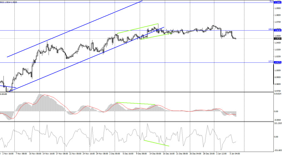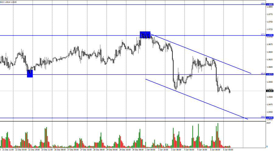 EUR/USD. 6 января. Эстер Джордж, ФРС: Ставки будут высокими до 2024 годаИнстаФорекс - Instaforex, 2 года назад Добрый день, уважаемые трейдеры! Пара EUR/USD в четверг выполнила разворот в пользу американской валюты и начала новый процесс падения с закрытием под уровнем коррекции 161,8% - 1,0574. Таким образом, европейская валюта может падать вплоть до уровня Фибо 200,0% - 1,0430. Нисходящий трендовый коридор характеризует настроение трейдеров как «медвежье». Вчерашний день был очень интересным, так как были и экономические отчеты, и первые выступления членов FOMC в 2023 году. Именно на выступлении одного из них я бы и хотел обратить внимание трейдеров. Эстер Джордж, президент ФРБ Канзас-сити, заявила в четверг, что ФРС будет удерживать ставки на высоком уровнем после завершения повышения в течение долгого времени. По ее словам, такой подход требуется для дальнейшего снижения инфляции. Денежно-кредитная политика ФРС оказывает влияние на спрос, а рецессии можно избежать в текущем и следующем году, однако риски ее возникновения все же имеются. Также Джордж отметила, что последние отчеты по инфляции являются удовлетворительными, что позволяет регулятору понемногу ослаблять давление на экономику. Однако очень важно не допустить преждевременного отказа от «жесткой» ДКП, следует и дальше сокращать баланс ФРС. На мой взгляд, слова Джордж можно расценить только как «ястребиные». Также отмечу, что отчет ADP, отражающий состояние рынка труда в США, зафиксировал прирост количества рабочих мест на 235 тысяч вместо 150, которых ждали трейдеры. Таким образом, причин покупать американскую валюту вчера было достаточно много. Мы увидели вполне логичную реакцию трейдеров. Сегодня также будет много важных отчетов и событий, активность трейдеров вряд ли снизиться, но направление пары будет зависеть от статистики. На 4-часовом графике пара выполнила разворот в пользу американского доллара и закрепление под уровнем Фибо 100,0% - 1,0638. Само по себе закрепление под этим уровнем не имеет статуса сигнала, но мы помним, что на часовом графике пара выполнила закрытие под боковым коридором, поэтому процесс падения может быть продолжен в направлении следующего уровня коррекции 127,2% - 1,0173. Отчет Commitments of Traders (COT):
