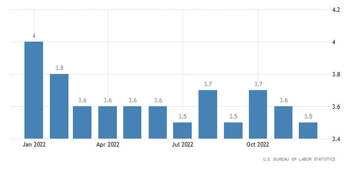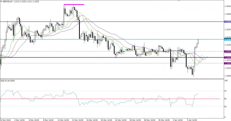 Горящий прогноз по GBP/USD от 09.01.2023ИнстаФорекс - Instaforex, 2 года назад Мягко говоря, данные по рынку труда в Соединенных Штатах оказались просто фантастическими. Особенно если смотреть на уровень безработицы, который снизился с 3,6% до 3,5%. Тем более, что предыдущие данные были пересмотрены в лучшую сторону с 3,7%. Да и по прогнозам он должен был остаться неизменным. Кроме того, вне сельского хозяйства было создано 223 тыс. новых рабочих мест. Это конечно не намного больше прогноза в 220 тыс., но все равно несколько больше для поддержания стабильности уровня безработицы. Иными словами, есть все предпосылки для дальнейшего роста занятости. Хотя безработица продолжает оставаться на рекордно низком уровне. Но самое интересное заключается в том, что доллар дешевел. Причем довольно сильно. Все дело как раз в невероятно хороших макроэкономических данных. Как не странно, но они указывают на явный перегрев рынка труда. Тем более, что Соединенные Штаты активно ведут политику по переманиванию промышленных производств на свою территорию. И возникает вопрос - а откуда компании возьмут рабочие руки для всех этих предприятий, при столь высоком уровне занятости? Да и в целом, перегрев рынка труда грозит внезапным и резким скачком безработицы а вместе с ней и катастрофическим сокращением инвестиций. Не говоря уже об убытках самих компаний. Ведь компании инвестируют в расширение бизнеса и создание новых рабочих мест, а когда оказывается что найти работников не получается, то и вложения не окупаются. Так что приходится списывать убытки и сокращать издержки, чтобы хоть как-то компенсировать негативные последствия. Именно эта перспектива и является причиной ослабления доллара. Уровень безработицы (Соединенные Штаты): Тем не менее, данная ситуация создает перспективы для долгосрочного роста американской валюты. Дело в том, что монетарные власти имеют в своем распоряжении только один инструмент для борьбы с перегревом рынка труда - повышение процентных ставок. Иными словами, Федеральная Резервная Система хоть и будет замедлять темпы роста ставки рефинансирования, ни о каком ее снижении в ближайшее время и речи быть не может. Скорее всего, цикл роста процентных ставок в Соединенных Штатах будет продолжаться в течение всего 2023 года. Тогда как Европейский Центральный Банк скорее всего уже в середине этого года начнет постепенно снижаться свою ставку рефинансирования. Фунт стерлингов по отношению доллара США укрепился в стоимости более чем на 250 пунктов в ходе минувшей пятницы. В итоге было отыграно все снижение с начала месяца, а котировка ушла выше значения 1.2100. Стоит отметить, что мы имеем распродажу долларовых позиций по всему рынку Форекс. Технический инструмент RSI в периоде H4 за счет интенсивного восходящего цикл пересекла среднюю линию 50 снизу вверх. Это указывает на высокий спрос на длинные позиции по фунту стерлингов. Alligator H4 сменил направление движения скользящих линий MA с нисходящего на восходящий цикл. В теории технического анализа, это сигнал к покупке. Ожидания и перспективы В данной ситуации инерционный восходящий ход может сохраняться на рынке за счет спекулятивного настроя трейдеров. Последующий рост объема длинных позиций ожидается после удержания цены выше уровня 1.2150 в четырехчасовом периоде. Стоит отметить, что столь быстрые ценовые