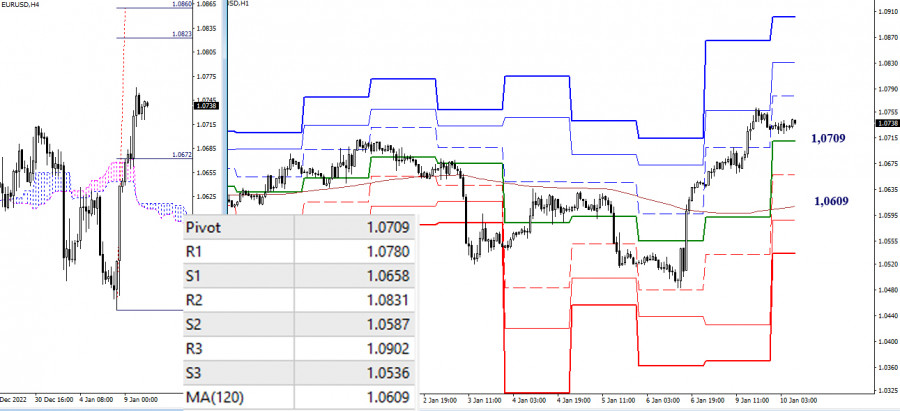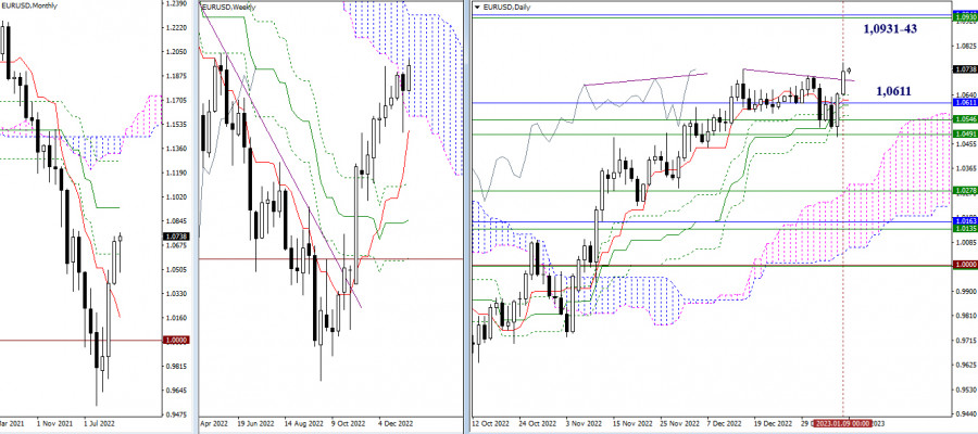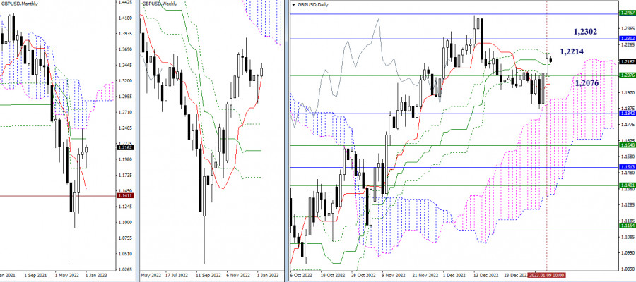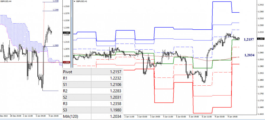 EUR/USD и GBP/USD 10 января – рекомендации технического анализаИнстаФорекс - Instaforex, 2 года назад EUR/USD Старшие таймфреймы Игроки на повышение обновили максимум декабря (1,0736), тем самым завершив коррекцию. Если им теперь удастся удержать ситуацию и продолжить дневной и недельный восходящий тренд, то следующим важным рубежом является 1,0931-43 (верхняя граница недельного облака + месячный среднесрочный тренд). Прохождение 1,0931-43 позволит сформировать новые бычьи целевые ориентиры. Зона поддержек к настоящему моменту стала шире (1,0611 – 1,0546 – 1,0491) и объединяет уровни разных временных интервалов (дневной крест + нижнюю границу недельного облака + недельный краткосрочный тренд + месячный Фибо Киджун). Н4 – Н1 Основное преимущество на младших таймах принадлежит игрокам на повышение. При продолжении подъёма сегодня значение внутри дня могут иметь сопротивления классических Пивот-уровней (1,0780 – 1,0831 – 1,0902). Ключевые уровни сейчас выступают в роли поддержек, формируя достаточно широкую зону. Так ближайшая поддержка это центральный Пивот-уровень (1,0709), далее следует промежуточный уровень поддержки (1,0658), а наиболее значимый рубеж – недельная долгосрочная тенденция находится сегодня на 1,0609. Закрепление ниже и разворот мувинга способны повлиять на действующий баланс сил. *** GBP/USD Старшие таймфреймы Вчера подъём был продолжен. Основные выводы и ожидания, озвученные ранее, сохраняют сегодня свою актуальность. Первоочередной сейчас является задача по ликвидации дневного мёртвого креста Ишимоку (1,2214). Далее значение могут иметь сопротивление месячного среднесрочного тренда (1,2302), а так же объединение максимального экстремума коррекции (1,2445) и сопротивлений нижних границ облаков Ишимоку недели (1,2457) и месяца (1,2454). Ближайшими поддержками в сложившейся ситуации являются уровни дневного креста Ишимоку (1,2142 – 1,2071 – 1,2025), усиленные недельным краткосрочным трендом (1,2076). Н4 – Н1 На младших временных интервалах основное преимущество принадлежит игрокам на повышение. Ориентирами для продолжения подъёма внутри дня служат классические Пивот-уровни (1,2232 – 1,2283 – 1,2358) и цель на пробой облака Н4 (1,2288 – 1,2338). Тем не менее, в настоящий момент наблюдается снижение и пара тестирует центральный Пивот-уровень (1,2157). Далее значение могут иметь промежуточная поддержка S1 (1,2106) и недельная долгосрочная тенденция (1,2034). Закрепление ниже и разворот мувинга изменят действующий баланс сил младших таймов. *** При техническом анализе ситуации используются: старшие таймфреймы – Ichimoku Kinko Hyo (9.26.52) + уровни Фибо Киджун Н1 – Pivot Points (классические) + Moving Avarage 120 (недельная долгосрочная тенденция) Материал предоставлен компанией InstaForex - www.instaforex.com |