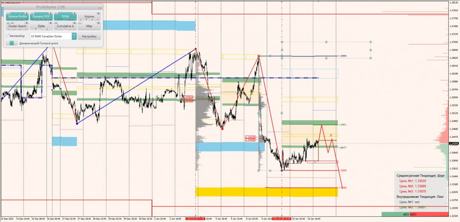 Среднесрочная тенденция: в шорт. Максимальное скопление объемов среднесрочной тенденции расположено в диапазоне по котировкам 1.35460-1.35560 и 1.34400-1.34470. В настоящий момент по паре совершаются инвестиционные операции ниже, указывая на силу продавцов.