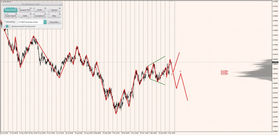 Долгосрочная тенденция: в лонг. Максимальное скопление объемов текущего контракта расположено в диапазоне по котировкам 0.67450-0.67780. В настоящий момент по паре совершаются инвестиционные операции выше, указывая на силу покупателей.
