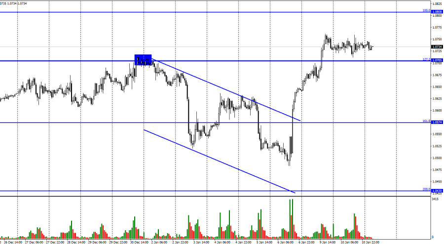 EUR/USD. 11 января. Трейдеры-быки взяли паузу после двухдневного ростаИнстаФорекс - Instaforex, 2 года назад Добрый день, уважаемые трейдеры! Пара EUR/USD во вторник двигалась исключительно горизонтально. После закрепления котировок над уровнем коррекции 127,2% - 1,0705 рост европейской валюты может быть продолжен в направлении следующего уровня Фибо 100,0% - 1,0808. Закрытие курса пары под уровнем 1,0705 сработает в пользу валюты США и некоторого падения в направлении коррекционного уровня 161,8% - 1,0574.