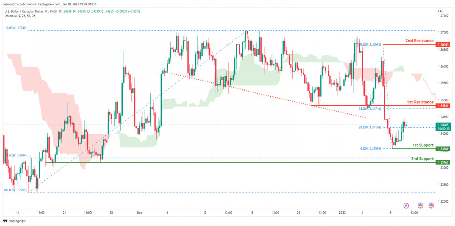 USD/CAD: ожидается усиление медвежьего импульса. Прогноз на 11 января 2023ИнстаФорекс - Instaforex, 2 года назад На 4-часовом графике пара USD/CAD торгуется в медвежьем тренде. Цена пробила нисходящую линию тренда и движется ниже облака Ишимоку, что указывает на медвежий импульс. Если этот импульс сохранится, ожидается, что цена направится к 1-му уровню поддержки 1.33569, где расположен недавний минимум. В альтернативном сценарии цена может развернуться вверх, чтобы повторно протестировать 1-й уровень сопротивления 1.34841, соответствующий уровню коррекции Фибоначчи 38.2%. Торговая рекомендация Вход: 1.34841 Условия для входа: повторное тестирование 1-го уровня сопротивления Тейк-профит: 1.32259 Условия для фиксации прибыли: 2-й уровень поддержки Стоп-лосс: 1.36645 Условия для активации ордера стоп-лосс: 2-й уровень сопротивления Материал предоставлен компанией InstaForex - www.instaforex.com |
