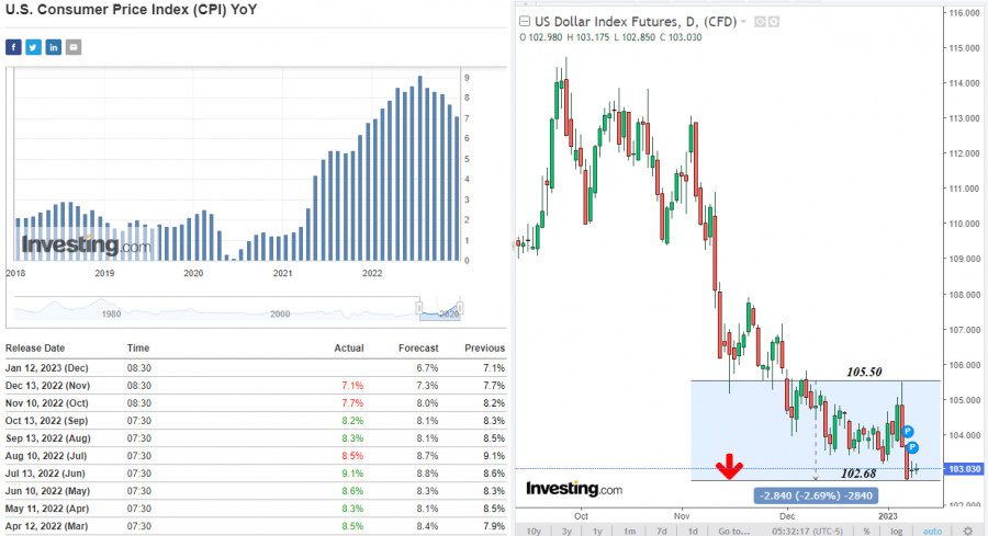 EUR/USD: ближайшие события экономического календаря и перспективыИнстаФорекс - Instaforex, 2 года назад Выступая во вторник на международном симпозиуме Риксбанк по независимости центральных банков, глава ФРС Джером Пауэлл воздержался от каких-либо комментариев относительно перспектив монетарной политики ЦБ США. Доллар в целом также нейтрально отреагировал на это выступление: ни быки, ни медведи не нашли в нем никаких намеков или сигналов, чтобы предпринимать активные действия накануне публикации (в четверг) ключевых данных по инфляции в США. С открытия сегодняшнего торгового дня доллар также в основном торгуется нейтрально, а индекс доллара DXY на текущий момент вблизи отметки 103.03 и цены закрытия вчерашнего торгового дня и открытия сегодняшнего. В сегодняшнем экономическом календаре сколь значимых публикаций не намечено, и, скорее всего, такая же динамика рынка и доллара сохранится и на американской торговой сессии. Завтра же волатильность на рынке, и особенно в котировках азиатских и сырьевых валют повысится сразу же в начале торгового дня, когда в 00:30 и 01:30 (GMT) будут опубликованы важные макро данные по Австралии и Китаю (об этом мы писали в нашем вчерашнем обзоре AUD/USD: воспользовавшись слабостью американского доллара). А в 13:30 будут опубликованы свежие (за декабрь) данные по инфляции в США. И здесь вновь ожидается снижение показателей, что может быть воспринято участниками рынка и продавцами доллара как сигнал к действию (о важных событиях недели см. в Важнейшие экономические события недели 09.01.2023 – 15.01.2023). Впрочем, данные могут оказаться и выше прогноза. Если же они также окажутся и выше предыдущих значений, то укрепления доллара, по всей видимости, завтра будет не избежать. Как следует из опубликованных на минувшей неделе протоколов декабрьского заседания американского ЦБ, его руководители пока что придерживаются жесткой позиции, выражая готовность к дальнейшему ужесточению денежно-кредитной политики. Руководители ФРС считают, что нарушения в глобальной цепочке поставок, а также повышенные инфляционные риски сохранятся ещё как минимум на год, а это с высокой вероятностью означает, что процентная ставка будет вновь повышена на ближайшем заседании (31 января – 01 февраля). Вопрос пока что заключается в том, насколько сильным будет это повышение, и данные по инфляции, ожидаемые завтра, смогут позволить участникам рынка сделать определённые выводы на этот счет. Как заявил во вторник глава ФРБ Атланты Рафаэль Бостик, ФРС готова поддерживать ставки на высоком уровне вплоть до 2024 года, а глава ФРБ Сан-Франциско Мэри Дэйли заявила СМИ, что на ближайшем заседании ФРС может быть принято решение о повышении ставки либо на 50, либо на 25 базисных пунктов. "Наши решения будут зависеть от поступающих данных в их совокупности", - сказал глава ФРС Джером Пауэлл после декабрьского заседания ЦБ добавив, что в ФРС "еще не достигли достаточно ограничительного уровня политики", рассматривая "риски для инфляции как повышательные", и "предстоит пройти определенный путь повышения ставок". Если же, как мы уже отметили, завтрашние данные по инфляции превзойдут ожидания рынка, то у ФРС появится больше аргументов, чтобы следовать намеченному курсу, т.е. довести уровень процентной ставки в этом году до 5,0% - 5,1%, а может быть, и выше, если инфляция продолжит раст