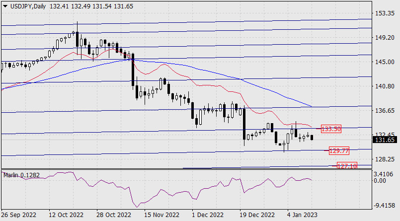 Прогноз по USD/JPY на 12 января 2022 годаИнстаФорекс - Instaforex, 2 года назад Японская йена сегодня утром снизилась к нижней границе консолидации последних четырёх дней. Как и европейские валюты, йена ждёт сегодняшнюю публикацию американских данных по инфляции за декабрь. Сигнальная линия осциллятора Марлин делает вторую попытку за неделю перейти на территорию понижающейся тенденции. Успех в этом осциллятора поможет цене продвинуться дальше вниз к поддержке 129.77. Преодоление уровня открывает цель 127.10.