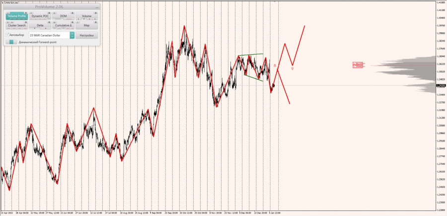 Долгосрочная тенденция: в шорт. Максимальное скопление объемов текущего контракта расположено в диапазоне по котировкам 1.35990-1.36270. В настоящий момент по паре совершаются инвестиционные операции ниже, указывая на силу продавцов.