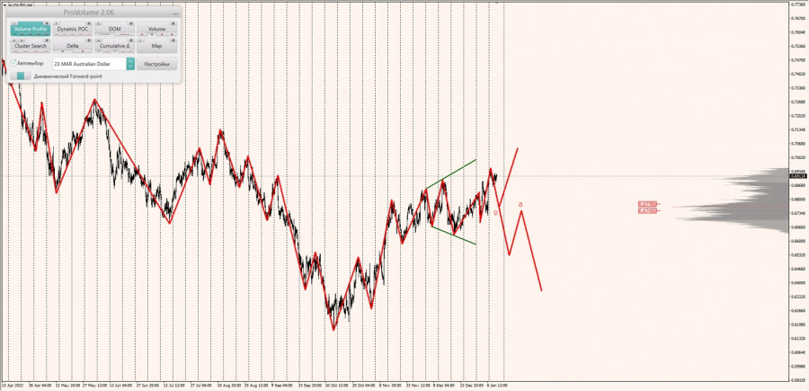 Долгосрочная тенденция: в лонг. Максимальное скопление объемов текущего контракта расположено в диапазоне по котировкам 0.67450-0.67780. В настоящий момент по паре совершаются инвестиционные операции выше, указывая на силу покупателей.