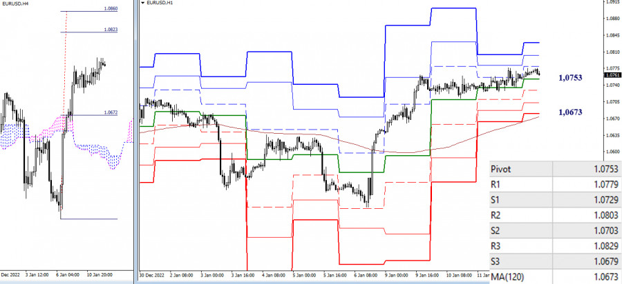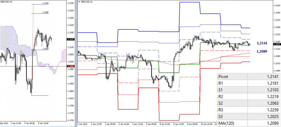 EUR/USD и GBP/USD 12 января – технический анализ ситуацииИнстаФорекс - Instaforex, 2 года назад EUR/USD Старшие таймфреймы Игроки на повышение вновь обновили дневной максимум, но результативность и масштабность подъёма при этом были вчера снижены до минимума. Ближайшим важным ориентиром для игроков на повышение остаётся рубеж 1,0931-43 (верхняя граница недельного облака + месячный среднесрочный тренд). В случае развития нисходящей коррекции первыми пару встретят поддержки дневного креста (1,0664-29), а далее к работе присоединятся месячный уровень (1,0611) и недельные поддержки (1,0546 – 1,0499). Н4 – Н1 На младших временных интервалах последние дни наблюдается боковое движение с незначительным подъёмом. При этом игроки на повышение сохраняют основное преимущество и используют в качестве главной поддержки текущего движения центральный Пивот-уровень, который сегодня находится на 1,0753. Ориентирами для продолжения подъёма внутри дня служат сопротивления классических Пивот-уровней (1,0779 – 1,0803 – 1,0829). Если же инициативой завладеют игроки на понижение, то их внимание будет направлено на прохождение поддержек классических Пивот-уровней (1,0729 – 1,0703 – 1,0679), и только после этого медведи приступят к тестированию наиболее значимой поддержки – недельной долгосрочной тенденции (10673). *** GBP/USD Старшие таймфреймы Войдя в зону притяжения и влияния дневного среднесрочного тренда (1,2142), пара обозначила торможение. В сложившейся ситуации можно обозначить следующие задачи для игроков на повышение – ликвидация дневного мёртвого креста Ишимоку (1,2214), тестирование сопротивлений (1,2302 – 1,2457) и формирование результата взаимодействия. При усилении медвежьих настроений порядок действий будет заключаться в прохождении поддержек 1,2076 – 1,2025 – 1,1933 – 1,1842. После закрепления под обозначенными поддержками вернётся возможность развития декабрьского отбоя. Н4 – Н1 На младших таймах основное преимущество принадлежит игрокам на повышение, но последнее время мы наблюдаем нисходящую коррекцию, центром притяжения которой служит центральный Пивот-уровень дня, сегодня он расположен на 1,2141. Главным ориентиром текущей коррекции является поддержка недельной долгосрочной тенденции (1,2089). Закрепление ниже и разворот мувинга могут изменить действующий баланс сил младших временных интервалов. Следующие поддержки внутри дня сегодня можно обозначить на 1,2063 – 1,2025 (классические Пивот-уровни). В случае активности игроков на повышение внимание внутри дня будет направлено на сопротивления классических Пивот-уровней (1,2181 – 1,2219 – 1,2259). *** При техническом анализе ситуации используются: старшие таймфреймы – Ichimoku Kinko Hyo (9.26.52) + уровни Фибо Киджун Н1 – Pivot Points (классические) + Moving Avarage 120 (недельная долгосрочная тенденция) Материал предоставлен компанией InstaForex - www.instaforex.com |