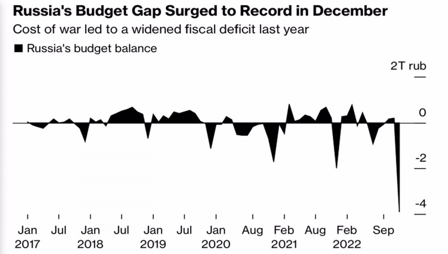 Рублю помогают санкции?ИнстаФорекс - Instaforex, 2 года назад Дефицит бюджета России в декабре, согласно исследованиям Bloomberg, достиг рекордных 3,9 трлн руб., что эквивалентно $56 млрд. Цены на ключевой сорт Urals вдвое меньше мировых по Brent и существенно ниже требуемых для российской экономики уровней, что свидетельствует о проблемах с переориентацией поставок. Доходы РФ явно сокращаются, как и положительное сальдо счета текущих операций. Тем не менее пара USDRUB идет на коррекцию. В чем причина таких парадоксов? В ослаблении доллара США против основных мировых валют? Или в чем-то другом? Динамика баланса бюджета России На мой взгляд, руку помощи рублю в настоящее время протягивают...санкции. Это звучит неправдоподобно, так как уже введенные ограничения бьют по экономике, а страхи по поводу новых в обычных условиях вызывают серьезные мигрени у национальной валюты. Увы, но текущие условия вряд ли можно назвать нормальными. Слухи о том, что США и другие западные страны рассматривают возможность установления потолка цен на российские нефтепродукты по аналогии с нефтью, приводят к увеличению объемов их покупок. До того момента как санкции вступят в силу, что ожидается одновременно с запретом ЕС на поставки дизельного топлива и других продуктов нефтепереработки из РФ, у контрагентов есть временная лазейка. Рост валютной выручки в преддверии даты X, когда эмбарго Евросоюза и потолок цен на российскую нефть вступили в силу 5 декабря, делал рубль самой эффективной валютой на Forex. В первую очередь из-за увеличения поставок в страны, которые вот-вот должны были столкнуться с ограничениями. История повторяется, но большее, на что способны «медведи» по USDRUB, это коррекция, а не слом восходящего тренда. Динамика различных сортов нефти Проблема в том, что потоки нефтепродуктов Москве гораздо сложнее будет переориентировать с Запада на Восток, так как потребность в них в Китае и других азиатских странах существенно ниже, чем в черном золоте. В итоге текущие 2,3% дефицита бюджета от ВВП в ближайшем будущем покажутся мечтой для РФ. Для поддержания военных расходов придется использовать средства Фонда национального благосостояния. Хорошо, что он есть. Не было бы, «медведям» по USDRUB пришлось бы бежать с поля боя, не оглядываясь. Безусловно, не последнюю роль в откате анализируемой пары играет общее ослабление доллара США против основных мировых валют. Против своего главного конкурента в лице евро «американец» потерял около 12% стоимости от уровней сентябрьских пиков. Виной всему намерение ФРС замедлить скорость повышения ставки по федеральным фондам с 50 до 25 б.п. в феврале. Основанием для более мелкого шага станет замедление инфляции в Штатах до 6,5%. Технически на дневном графике EURUSD имеет место откат к восходящему тренду. Отбой от поддержек на 66,45, 66,2 и 64,5, где расположены важные пивот-уровни, имеет смысл использовать для формирования длинных позиций. Как, впрочем, и неспособность пары вернуться в границы старого восходящего торгового канала. Материал предоставлен компанией InstaForex - www.instaforex.com |