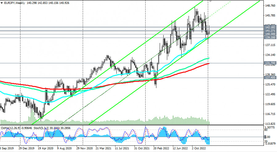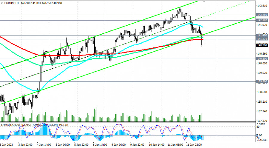 EUR/JPY: сценарии динамики на 12.01.2023ИнстаФорекс - Instaforex, 2 года назад На фоне спроса на защитные активы иена сегодня укрепляется как против доллара, так и в кросс-парах, в частности в паре EUR/JPY. На момент публикации данной статьи она торгуется вблизи отметки 141.00, штурмуя сильные уровни поддержки 141.45 (ЕМА144 на дневном графике), 141.27 (ЕМА200 на 1-часовом графике). В случае дальнейшего падения целью станет ключевой уровень поддержки 140.30 (ЕМА200 на дневном графике). Его пробой и пробой важного долгосрочного уровня поддержки 139.20 (ЕМА50 и нижней линии восходящего канала на недельном графике) значительно усилят риски перехода EUR/JPY в зону среднесрочного медвежьего рынка, направив пару к ключевому уровню поддержки 131.70 (ЕМА200 на недельном графике). Пробой уровня поддержки 127.40 (ЕМА200 на месячном графике) завершит процесс перехода пары в зону долгосрочного медвежьего рынка. В альтернативном сценарии, отметили мы в нашем сегодняшнем «Фундаментальном анализе», «логично предположить, что вблизи текущей «круглой» отметки 141.00 произойдет отбой и рост EUR/JPY, учитывая также тот факт, что на сегодня пара уже выбрала ее среднюю внутридневную волатильность 130-150 пунктов (подробнее об особенностях торговли парой см. в статье EUR/JPY: валютная пара (характеристики, рекомендации))». Рост в зону выше уровней 141. 27, 141.45 вернет пару в зону долгосрочного бычьего рынка. Ближайшая цель роста в этом случае – уровень сопротивления 142.45 (ЕМА50 на дневном графике). *) о важных событиях недели см. в Важнейшие экономические события недели 09.01.2023 – 15.01.2023 Уровни поддержки: 141.00, 140.30, 140.00, 139.20, 139.00, 138.00, 137.30, 137.00 Уровни сопротивления: 141.27, 141.45, 142.00, 142.18, 142.45, 143.00