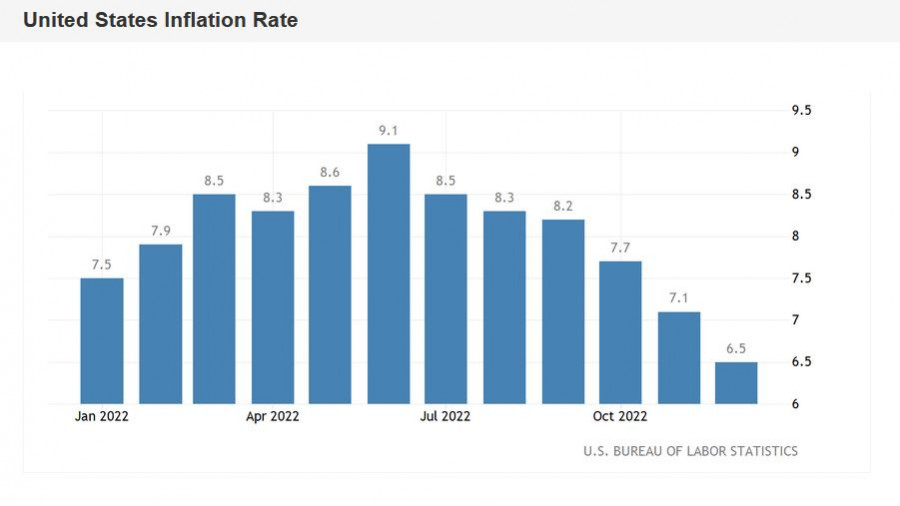 EUR/USD. Замедление инфляции в США: первые выводы и возможные последствияИнстаФорекс - Instaforex, 2 года назад Пара евро-доллар сегодня обновила почти 9-месячный ценовой максимум: впервые с апреля прошлого года цена поднялась в область восьмой фигуры, обозначившись на отметке 1,0868. Впрочем, данный ценовой прорыв следует рассматривать в более широком аспекте, в контексте амбиций к достижению основной цели в виде отметки 1,1000. Ещё на прошлой неделе 10-я фигура маячила где-то за горизонтом, тогда как на сегодняшний день до этого таргета осталось всего ничего, менее 200 пунктов. Самый важный релиз недели Итак, в четверг были опубликованы данные по росту индекса потребительских цен в США, которые отразили дальнейшее замедление американской инфляции. Это ключевой релиз недели, последствия которого будут ощущаться ещё достаточно долго – вплоть до первого в этом году заседания ФРС. Если говорить языком сухих цифр, то ситуация носит следующий характер. Общий ИПЦ в годовом выражении вырос в декабре до отметки 6,5%, продолжая тем самым нисходящую тенденцию. В данном случае можно говорить о стойкой тенденции: показатель снижается уже шестой месяц подряд, после достижения летом пика на отметке 9,1%. В месячном исчислении общий ИПЦ также разочаровал долларовых быков, впервые за долгое время снизившись в отрицательную область (-0,1%). Стержневой индекс потребительских цен, без учета цен на продукты питания и энергоносители, продемонстрировал аналогичную динамику. В годовом исчислении базовый индекс вырос в декабре на 5,7%. Здесь также можно говорить о сформировавшейся тенденции – индикатор демонстрирует нисходящую динамику уже третий месяц подряд. Напомню, что в сентябре был зафиксирован 40-летний максимум, когда стержневой индекс подскочил до 6,6%. Но это было пиковое значение, после чего показатель стал постепенно (но последовательно) снижаться. Здесь необходимо напомнить, что в прошлую пятницу были опубликованы ключевые данные по росту рынка труда в США. Нонфармы также оказались не в пользу американской валюты, хотя почти все компоненты (кроме зарплатного) вышли в зелёной зоне. В частности, уровень безработицы снизился до 3,5% (с предыдущего значения 3,7%), тогда как темпы роста средней почасовой заработной платы замедлились в годовом выражении до 4,6%. Отмечу, что с января по сентябрь прошлого года зарплатный компонент стабильно превышал или соответствовал 5-процентному уровню. С октября наблюдается последовательная нисходящая тенденция. Другими словами, на фоне снижения уровня безработицы, инфляция последовательно замедляется. И речь не только о динамике ИПЦ и базовом индексе PCE. Например, структура отчётов по росту деловой активности ISM в производственном секторе и деловой активности ISM в сфере услуг также свидетельствует об аналогичных тенденциях: в частности, ни одна из шести основных отраслей обрабатывающей промышленности в декабре не сообщила о росте цен. Последствия инфляционного релиза Опубликованный в четверг инфляционный отчёт расставил многие точки над i. Теперь мы можем говорить о том, что Федрезерв может себе позволить, во-первых, перейти к более умеренным шагам в контексте повышения процентных ставок (то есть замедлиться до 25 пунктов), а во-вторых – пересмотреть пиковое значение ставок в сторону понижения (на данный момент, напомню, ФРС з