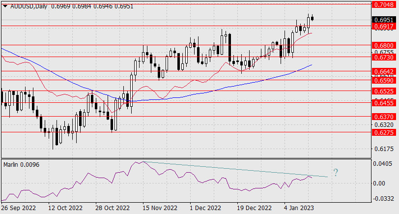 Прогноз по AUD/USD на 13 января 2022 годаИнстаФорекс - Instaforex, 2 года назад В четверг, на оптимистичных данных по снижению инфляции в США, австралийский доллар подрос на 61 пункт. До целевого уровня 0.7048 осталось около 80-ти пунктов. Возможно, цена достигнет этот уровень, но от него вероятная дивергенция станет гораздо сильнее, чем возможная уже от текущих уровней.