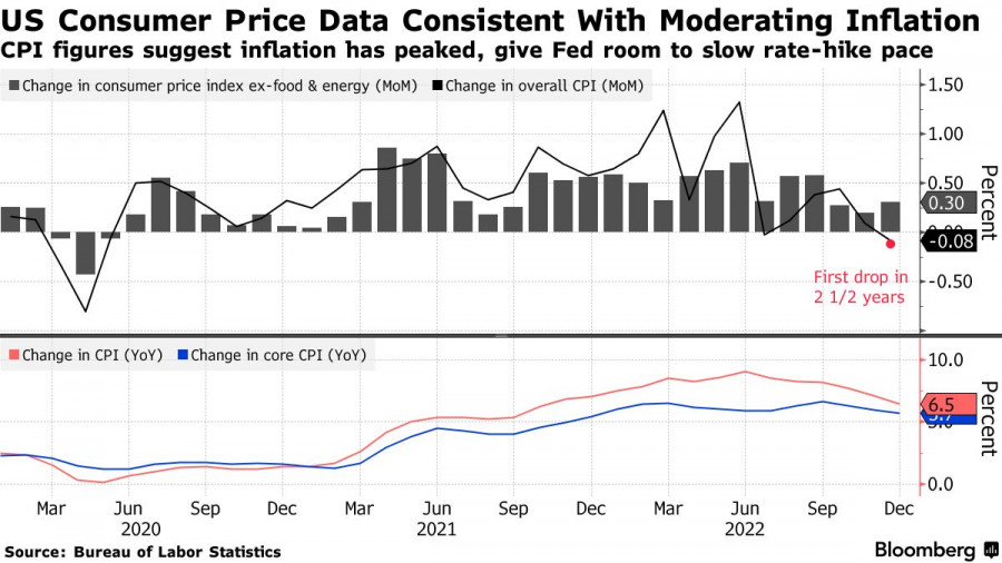 Рост инфляции в США уверенно замедляетсяИнстаФорекс - Instaforex, 2 года назад Данные по инфляции в США привели к полной неразберихе на рынке. Надежды одних на мягкую политику ФРС в ближайшем будущем из-за более резкого замедления роста цен были нивелированы заявлениями представителей центрального банка о том, что ставки будут находиться на своих максимумах довольно длительный промежуток времени. Как показали данные, инфляция в США продолжила замедляться в декабре, подтверждая, что ценовое давление достигло своего пика и теперь постепенно снижается, что, с одной стороны, позволяет Федеральной резервной системе замедлить темпы повышения процентных ставок. С другой стороны, все боятся повторения сценария 80-х годов. Индекс потребительских цен снизился в январе на 0,1% по сравнению с предыдущим месяцем, при этом цены на энергоносители снизились впервые за 2,5 года. В отчете Министерства труда США сказано: индекс потребительских цен вырос на 6,5% по сравнению в декабре прошлого года в годовом исчислении, что является самым низким показателем с октября 2021 года. Базовый индекс без учета продуктов питания и энергоносителей вырос на 0,3% в прошлом месяце и на 5,7% по сравнению с прошлым годом, что является самым медленным темпом с декабря 2021 года. Данные полностью совпали с прогнозами экономистов, что и привело к такой вот неразберихе на многих рынках. Как я отмечал выше, данные в сочетании с более низкими, чем ожидалось, значениями за предыдущие месяцы указывают на более устойчивые признаки того, что инфляция снижается, что позволяет ФРС принять решение о повышении ставки лишь на четверть пункта на своем следующем заседании, которое пройдет 1 февраля. Однако устойчивый потребительский спрос, особенно на услуги, в сочетании с жесткой конъюнктурой рынка труда угрожают сохранить повышательное давление на цены. Ряд экономистов считает, что даже несмотря на цифры по инфляции, ФРС повысит ставки еще на 0,5%, как это было в декабре, прежде чем сделать паузу для оценки того, как самый агрессивный цикл ужесточения за последние десятилетия влияет на экономику. На этой неделе я неоднократно говорил о выступлениях представителей ФРС, которые подчеркивали необходимость удержания ставок на максимумах в течение достаточно долгого времени и предостерегали от недооценки их стремления к этому. Несмотря на это, инвесторы по-прежнему делают ставку на то, что центральный банк снизит ставки к концу года, даже учитывая, что официальные лица говорят об обратном. После выхода отчета по инфляции президент ФРБ Филадельфии Патрик Харкер заявил, что центральный банк теперь должен повышать процентные ставки с шагом в четверть пункта, поскольку он приближается к конечной точке своей кампании повышения. Хотя в целом ожидается, что годовой рост цен в этом году существенно замедлится, остается много неопределенности в отношении того, насколько сильно может снизиться инфляция и не приведет ли повышение ставки ФРС в конечном итоге к рецессии в США. Теперь траектория инфляции будет определяться в нескольких важнейших областях: некоторые из них являются внутренними — рынки труда и жилья, а другие — глобальными, включая цепочки поставок и геополитическую напряженность. Что касается технической картины EURUSD, то спрос на евро сохраняется. Также сохраняются и шансы на дальне