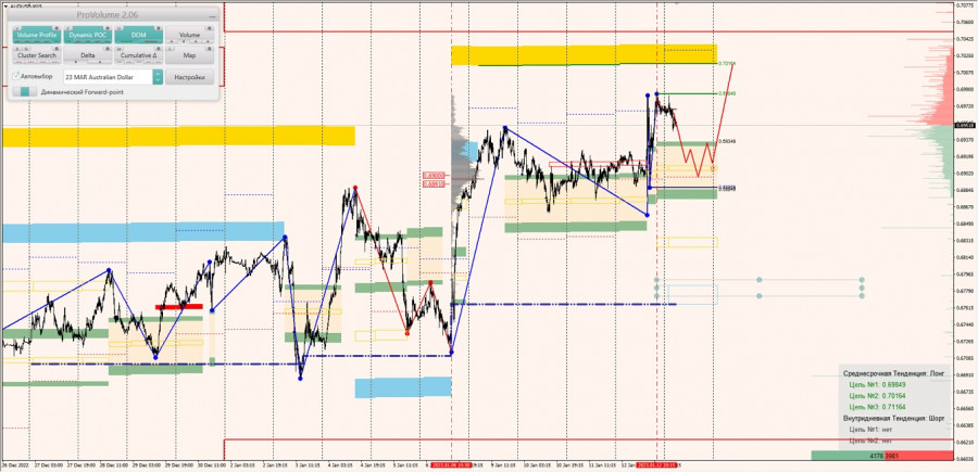 Среднесрочная тенденция: в лонг. Максимальное скопление объемов среднесрочной тенденции расположено в диапазоне по котировкам 0.68910-0.69000. В настоящий момент по паре совершаются инвестиционные операции выше, указывая на силу покупателей.
