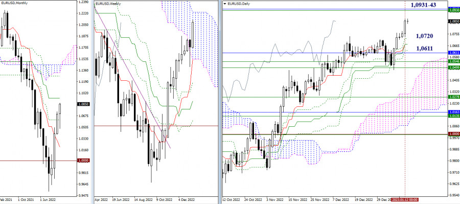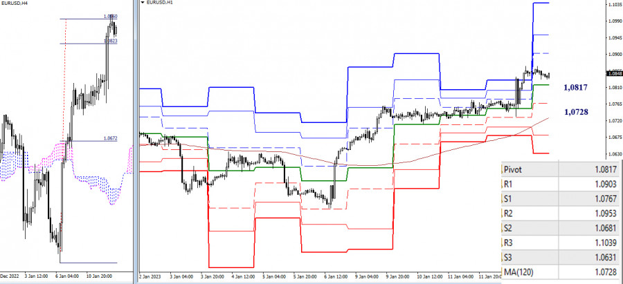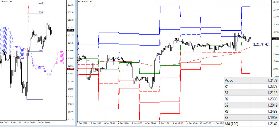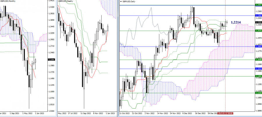 EUR/USD и GBP/USD 13 января – технический анализ ситуацииИнстаФорекс - Instaforex, 2 года назад EUR/USD Старшие таймфреймы Игроки на повышение продолжают подъём, вчерашний день был для них весьма результативным. Целевым ориентиром сейчас является рубеж 1,0931-43, где объединили свои усилия сопротивления верхней границы недельного облака и месячного среднесрочного тренда. Итог взаимодействия будет определять перспективы дальнейшего развития ситуации. Пробой сформирует новые цели и откроет более дальние перспективы. Отбой вернёт пару к медвежьим настроениям, направив внимание на поддержки. Ближайшими поддержками сейчас служат уровни дневного креста Ишимоку 1,0720 – 1,0675 – 1,0630. Н4 – Н1 На Н4 отработана цель на пробой облака (1,0860), что привело к торможению и незначительному снижению. Ориентирами снижения сегодня являются ключевые уровни, которые формируют поддержки на рубежах 1,0817 (центральный Пивот-уровень) и 1,0728 (недельная долгосрочная тенденция), промежуточную поддержку можно обозначить на 1,0767 (S1). Закрепление ниже и разворот мувинга способны изменить действующий баланс сил, отдав предпочтения развитию медвежьих настроений. Если же игроки на повышение сейчас сумеют сохранить инициативу и преодолеют сопротивление цели на пробой облака Н4 (1,0860), то внутри дня их ждут ориентиры в виде сопротивлений классических Пивот-уровней (1,0903 – 1,0953 – 1,1039). *** GBP/USD Старшие таймфреймы Для развития событий на текущем этапе по-прежнему важно в первую очередь ликвидировать дневной мёртвый крест, заключительный уровень которого находится на 1,2214. Далее в планы игроков на повышение будет входить взаимодействие с такими значимыми рубежами, как 1,2302 (месячный среднесрочный тренд) и 1,2454-57 (нижние границы недельного и месячного облаков). В настоящий момент на изменения в расстановке сил, возможностей и перспектив будут влиять неудача при ликвидации дневного креста, а также возврат его уровней (1,2142 – 1,2071 – 1,2043) на сторону игроков на понижение. Н4 – Н1 На младших таймфреймах основное преимущество продолжает оставаться у игроков на повышение. Ориентирами для продолжения подъёма внутри дня сейчас служат сопротивления классических Пивот-уровней (1,2273 – 1,2339 – 1,2433) и цель на пробой облака Н4 (1,2288 – 1,2338). Развитие нисходящей коррекции и переход на сторону медведей ключевых уровней младших временных интервалов, они сегодня находятся на 1,2179 (центральный Пивот-уровень) и 1,2142 (недельная долгосрочная тенденция), изменят действующий баланс сил. В этом случае внимание внутри дня сместится к поддержкам классических Пивот-уровней (1,2113 – 1,2019 – 1,1953). *** При техническом анализе ситуации используются: старшие таймфреймы – Ichimoku Kinko Hyo (9.26.52) + уровни Фибо Киджун Н1 – Pivot Points (классические) + Moving Avarage 120 (недельная долгосрочная тенденция) Материал предоставлен компанией InstaForex - www.instaforex.com |
