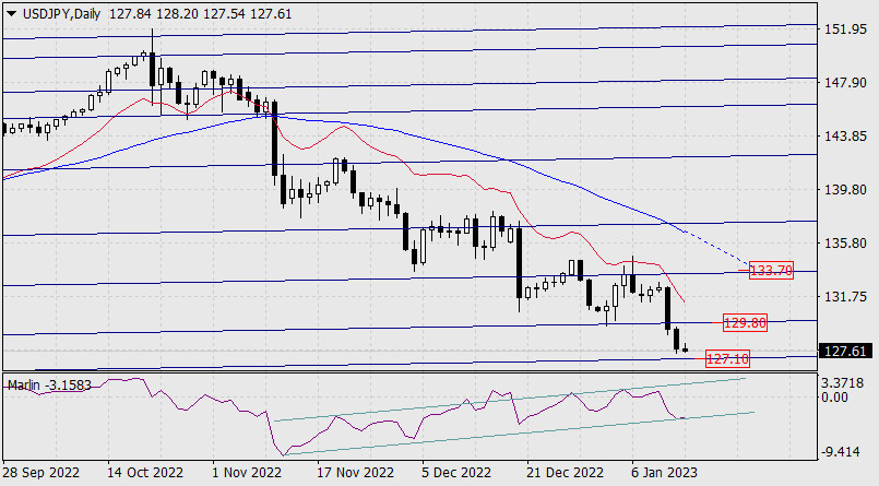 Прогноз по USD/JPY на 16 января 2022 годаИнстаФорекс - Instaforex, 2 года назад Понижающийся тренд пары USD/JPY и повышающийся тренд осциллятора Марлин затянулись в своём противоходе. Принимая во внимание, что осциллятор опережающий, а также историческую статистику, показывающую разворот цены вслед устоявшемуся тренду осциллятора, мы ждём разворот пары в сторону роста, как минимум в существенную коррекцию, от всего снижения с 21 октября прошлого года. И если не случится сюрпризов, то разворот цены произойдёт от ближайшей поддержки 127.10, которую мы видим на графике дневного масштаба. Первой целью роста станет ближайшая вложенная линия ценового канала в районе 129.80. Её преодоление открывает путь к следующей линии (133.70), к которой приближается индикаторная линия Крузенштерна. Линия Крузенштерна выступает самостоятельным уровнем поддержки и сопротивления, при совпадении с какой-либо другой графической линией, усиливающей её.