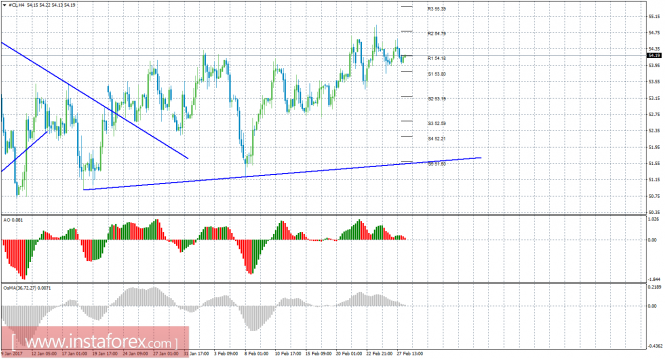 Технический анализ сырой нефти за 28 февраля 2017 годаИнстаФорекс - Instaforex, 8 лет назад 4-часовой таймфрейм Анализ: Анализ сырой нефти за 28 февраля показывает, что цена возобновила коррекционное движение и закрепилась ниже уровня сопротивления R1. Целями для восходящего движения сейчас являются уровни R2 – 54,79 и R3 – 55,39, если цена закрепится обратно выше 54,18. Целями для продолжения нисходящей коррекции выступают уровни 53,80 и 53,19, если цена останется ниже 54,18. Восходящая линия тренда перестроена и теперь вновь оказывает поддержку торгующим на повышение. Однако угол ее наклона минимальный, что подразумевает возможные глубокие коррекции. Индикатор Awesome показывает текущее нисходящее движение, так как последний закрытый бар красного цвета. OsMA также направлен вниз, что говорит о нисходящем характере движения и в среднесрочном плане. Отскок цены от 53,80 может спровоцировать возобновление движения вверх. Торговые рекомендации: Из проведенного анализа движения цены на нефть можно сделать вывод, что сейчас можно рассматривать ордера на покупку с целями 54,79 и 55,39. Стоп лосс выставляем ниже ближайшего уровня поддержки. При заходе сделки в прибыльность 100-150 пунктов, рекомендуется переносить открытую сделку в безубыток. Если цена отскочит от 53,80 или закрепится выше 54,18, это укажет на завершение коррекции, как и разворот вверх одного или обоих индикаторов. Шорты на данный момент не актуальны. Помимо технической картины следует также учитывать фундаментальные данные и время их выхода. Пояснения к иллюстрации: Awesome Oscillator – красные и зеленые бары в окне индикаторов. OsMA – серые бары в окне индикаторов. Линии тренда – синие линии. Уровни поддержки и сопротивления – красные горизонтальные линии.Материал предоставлен компанией InstaForex - www.instaforex.com |