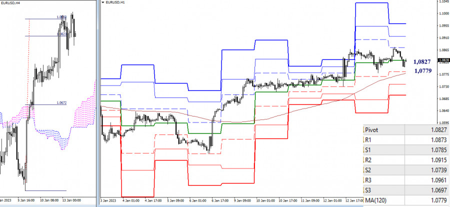 EUR/USD и GBP/USD 16 января – технический анализ ситуацииИнстаФорекс - Instaforex, 2 года назад EUR/USD Старшие таймфреймы На прошлой неделе игроки на повышение продолжили подъём и сформировали при закрытии достаточно оптимистичную бычью свечу. Пара приблизилась к важному рубежу сопротивлений данного участка 1,0931-43 (верхняя граница недельного облака + месячный среднесрочный тренд). Результат взаимодействия будет определять дальнейшие возможности по развитию ситуации, а так же позволит рассмотреть последующие перспективы и ориентиры. Ближайшими поддержками в настоящий момент служат уровни дневного креста Ишимоку (1,0725 – 1,0679 – 1,0633). Н4 – Н1 На младших таймах чуть ранее была исполнена цель на пробой облака Н4 (1,0860). Продвижение игроков на повышение приостановлено. Пара сейчас тестирует центральный Пивот уровень (1,0827), далее развитие коррекции приведёт к недельной долгосрочной тенденции (1,0779), пробой и разворот мувинга способны изменить действующий баланс сил в пользу игроков на понижение. Дополнительными поддержками сегодня в случае снижения внутри дня могут оказаться S2 (1,0739) и S3 (1,0697). Если же пара сможет успешно уйти за пределы цели Н4 и продолжить подъём, то после обновления максимума (1,0875) внимание будет направлено на сопротивления классических Пивот уровней R2 (1,0915) и R3 (1,0961). *** GBP/USD Старшие таймфреймы Ликвидация дневного мёртвого креста Ишимоку продолжается. Кроме дневных уровней своё влияние на возможности движения оказывает месячное сопротивление среднесрочного тренда (1,2302). Пробой рубежа 1,2302 сделает основным бычьим ориентиром район 1,2457 (нижние границы недельного и месячного облака). В случае формирования отбоя и закрепления под дневным крестом Ишимоку (1,2214 – 1,2142 – 1,2064), который сейчас имеет усиление от недельного краткосрочного тренда (1,2111), внимание будет направлено на дневное облако Ишимоку. Н4 – Н1 Пара отработала цель на пробой облака Н4 по первому целевому ориентиру (1,2288). В качестве повышательных ориентиров на младших таймах сейчас можно отметить уровень 100% отработки цели (1,2338) и сопротивления классических Пивот уровней (1,2308 – 1,2368). В настоящий момент тестируются ключевые поддержки младших таймов 1,2209 – 1,2179 (центральный Пивот-уровень + недельная долгосрочная тенденция). Закрепление ниже и разворот мувинга изменят действующий баланс сил, что может привести к усилению медвежьих настроений. Дополнительными поддержками внутри дня сегодня служат классические Пивот уровни 1,2110 (S2) и 1,2071(S3). *** При техническом анализе ситуации используются: старшие таймфреймы – Ichimoku Kinko Hyo (9.26.52) + уровни Фибо Киджун Н1 – Pivot Points (классические) + Moving Avarage 120 (недельная долгосрочная тенденция) Материал предоставлен компанией InstaForex - www.instaforex.com |