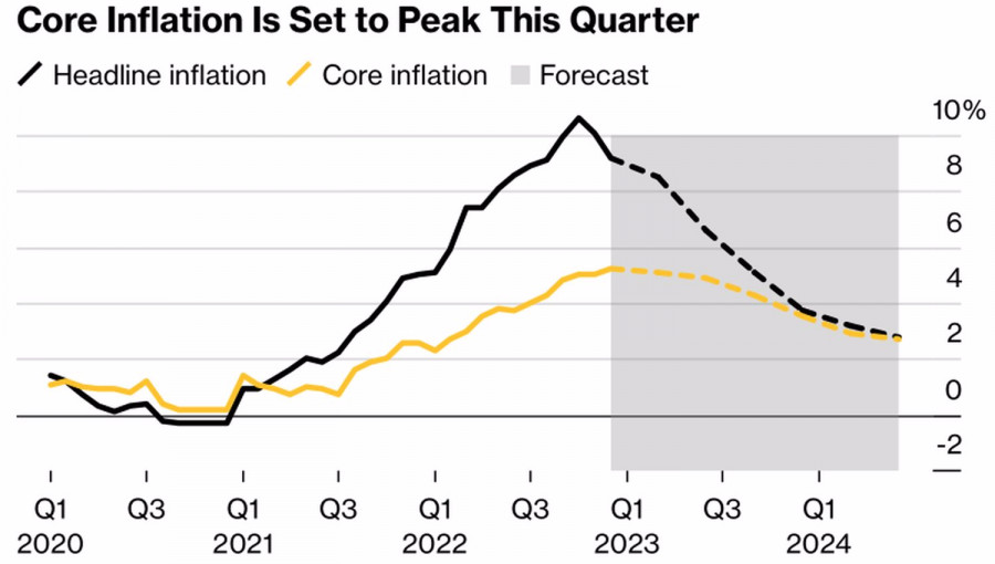 Евро стоит придержать коней?ИнстаФорекс - Instaforex, 2 года назад Разные скорости монетарной рестрикции ФРС и ЕЦБ, а также сужение дивергенции в экономическом росте США и еврозоны подбросили EURUSD к области 9-месячных максимумов. Пара отметилась лучшим недельным ралли за два месяца, однако обновленные прогнозы экспертов Bloomberg заставили «быков» сомневаться в собственной правоте. Оказывается, не только Федрезерв, но и Европейский центробанк может начать снижение стоимости заимствований в этом году. Действительно, если ФРС совершит в 2023 «голубиный» разворот, почему бы и ЕЦБ не сделать то же самое? Согласно консенсус-прогнозу экспертов Bloomberg, базовая инфляция в еврозоне достигнет пика в 5,1% в первом квартале, после чего ее темпы роста упадут до 3,5% к концу года. В результате ставка по депозитам поднимется на 50 б.п. в феврале и марте, затем на 25 б.п. в мае или июне до 3,25%, после чего начнет снижаться в сентябре. Прогнозы по ставке по депозитам ЕЦБ Мнение экспертов противоречит позиции инвесторов-участников опроса MLIV Pulse. По мнению большинства из 201 респондента, стоимость заимствований в еврозоне подскочит выше 3,5%. 15% прогнозируют рост показателя до рекордного максимума в 4%. 60% опрошенных считают, что Европа избежит энергетического кризиса, а наибольшие выгоды от открытия китайской экономики извлекут предметы роскоши, туризм и евро. В последнем случае речь идет об укреплении региональной валюты благодаря улучшению состояния счета текущих операций. На мой взгляд, главным драйвером изменения котировок основной валютной пары продолжит оставаться инфляция. Есть мнение, что потребительские цены в Старом Свете упадут настолько быстро, что многие будут удивлены, а ЕЦБ будет вынужден совершить «голубиный» разворот. Где к тому времени будет находиться ФРС – большой вопрос, однако, если ставка по федеральным фондам выйдет на плато, EURUSD рискует ослабнуть к концу года. Динамика европейской инфляции В настоящее время рынком правит Жадность и принцип покупай на откатах, однако если что-то начнет сбоить, закрытие лонгов по фондовым индексам США и основной валютной паре может обернуться серьезным откатом. Основные страхи связаны с приходом холодной погоды в Европу и с проблемами китайской экономики. Действительно, резкий рост смертности увеличит вероятность возвращения к локдаунам, а празднование Лунного нового года позволяет говорить об отложенном старте восстановления. Не будем сбрасывать со счетов и многочисленные спичи чиновников FOMC, которыми насыщена неделя к 20 января. Наверняка они будут говорить, что работа ФРС еще не сделана, и о том, что рынки бегут впереди себя. Не напугает ли это «быков» по EURUSD? Технически на дневном графике основной валютной пары сила восходящего тренда не вызывает сомнений. Вместе с тем формирование внутреннего бара с последующим неудачным тестом его верхней границы усиливает риски отката. Продажи от 1,079 могут принести свои плоды, однако последующий отбой от 1,0745 и 1,072 имеет смысл использовать для разворота. Материал предоставлен компанией InstaForex - www.instaforex.com |