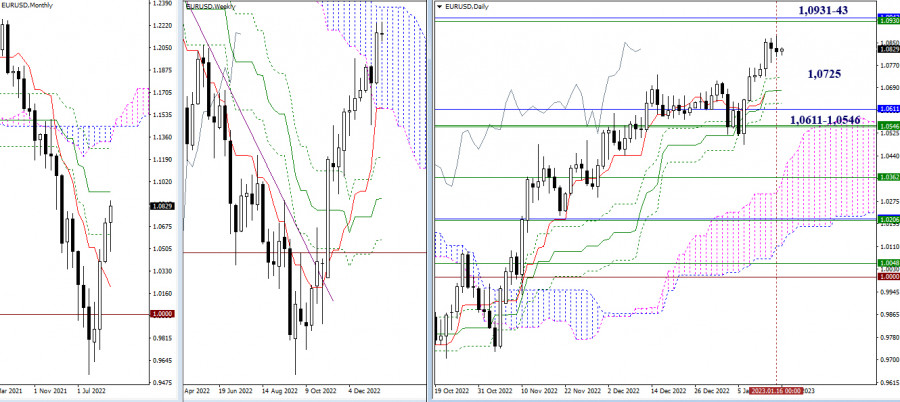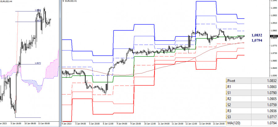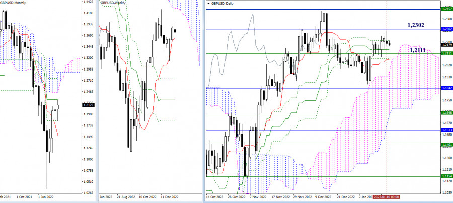 EUR/USD и GBP/USD 17 января – технический анализ ситуацииИнстаФорекс - Instaforex, 2 года назад EUR/USD Старшие таймфреймы Вчера пара сохранила торможение. Результативность в дневном движении отсутствовала, поэтому основные выводы и ожидания сохраняют свою актуальность. Наиболее важным бычьим ориентиром служит район 1,0931-43 (верхняя граница недельного облака + месячный среднесрочный тренд), а внимание игроков на понижение, в случае их активности, будет направлено на поддержки дневного креста Ишимоку (1,0725 – 1,0679 – 1,0633) и зону объединения месячного и недельных уровней 1,0611 – 1,0546, расположенную чуть ниже. Н4 – Н1 На младших таймфреймах наблюдается неопределённость. Пара, используя притяжения центрального Пивот уровня (1,0832), остановилась в раздумьях. Работа выше недельной долгосрочной тенденции (1,0794) сохраняет преимущество на стороне игроков на повышение. Ориентирами для развития подъёма внутри дня служат классические Пивот уровни (1,0863 – 1,0905 – 1,0936). Закрепление ниже недельной долгосрочной тенденции (1,0794) изменит действующий баланс сил младших таймов, а ориентирами для развития медвежьих настроений при этом станут 1,0759 – 1,0717. *** GBP/USD Старшие таймфреймы Тестирование зоны притяжения и влияния месячного уровня 1,2302 привело к некоторому дневному отскоку и возврату в область консолидации. В результате для игроков на повышение по-прежнему важен рубеж 1,2302, а для соперника задача заключается в преодолении скопившихся поддержек дневного креста Ишимоку (1,2214 – 1,2142 – 1,2064), усиленного недельным краткосрочным трендом (1,2111), и в закреплении в дневном облаке Ишимоку. Н4 – Н1 На младших таймах в узком коридоре между ключевыми уровнями 1,2216 (центральный Пивот уровень) и 1,2182 (недельная долгосрочная тенденция) развивается неопределённость. Победа игроков на повышение и выход из сложившегося коридора в бычьем направлении вернёт актуальность сопротивлениям классических Пивот уровней (1,2262 – 1,2333 – 1,2379). Если же из бокового движения первыми выйдут игроки на понижение и сумеют изменить действующий баланс сил, то их ориентирами внутри дня будут служить поддержки классических Пивот уровней (1,2145 – 1,2099 – 1,2028). *** При техническом анализе ситуации используются: старшие таймфреймы – Ichimoku Kinko Hyo (9.26.52) + уровни Фибо Киджун Н1 – Pivot Points (классические) + Moving Avarage 120 (недельная долгосрочная тенденция) Материал предоставлен компанией InstaForex - www.instaforex.com |