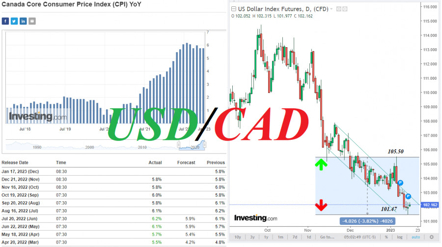 USD/CAD: в ожидании свежих данных по инфляцииИнстаФорекс - Instaforex, 2 года назад Индекс доллара DXY умеренно растет с открытия сегодняшнего торгового дня. На момент публикации данной статьи фьючерсы DXY торговались вблизи отметки 102.16, на 22 пункта выше цены закрытия вчерашнего торгового дня. В целом, сохраняется нисходящая динамика доллара, а на графике DXY образовался новый диапазон примерно в 400 пунктов, с границами, проходящими через отметки 105.50 и 101.47. Учитывая ожидания рынка того, что ФРС в очередной раз замедлит темпы повышения своей процентной ставки на заседании 31 января – 01 февраля и, возможно, намекнет на дальнейшее движение в этом направлении, что, в конечном итоге, не исключает вероятности перехода от жесткой политики к мягкой, наиболее вероятным видится пробой нижней границы этого диапазона и дальнейшее снижение в сторону психологически значимой отметки 100.00. В альтернативном сценарии ФРС продолжит дальнейшее повышение процентной ставки, не снижая темпов: так или иначе, инфляция в США все еще значительно и кратно превышает целевой уровень ФРС 2%. Это, как не раз заявляли представители руководства ФРС, включая ее главу Пауэлла, неприемлемый для американского ЦБ уровень инфляции, и в этом смысле одним из главных инструментов по ее сдерживанию – повышение процентной ставки. Как следует из протоколов декабрьского заседания, руководители ФРС считают, что нарушения в глобальной цепочке поставок, а также повышенные инфляционные риски сохранятся ещё как минимум год. Сегодня же в центре внимания участников рынка будет публикация (в 13:30 GMT) свежих данных по уровню инфляции в Канаде (о важных событиях недели см. в Важнейшие экономические события недели 16.01.2023 – 22.01.2023). Ожидается, что основной индекс потребительских цен (CPI) снизился в декабре, а базовый CPI (без учета цен фруктов, овощей, бензина, топливного масла, природного газа, процентов по ипотеке, междугородного транспортного сообщения и табачных изделий) вырос (+0,1% и +6,1% в годовом выражении против значений в 0% и +5,8% в предыдущем месяце). Учитывая, что целевой уровень инфляции для Банка Канады находится в диапазоне 1%-3%, рост показателя выше этого диапазона является предвестником повышения ставки и позитивным фактором для CAD. Если ожидаемые данные окажутся хуже предыдущих значений, то это негативно повлияет на CAD. Данные лучше предыдущих значений укрепят канадский доллар. С технической же точки зрения, USD/CAD развивает восходящую динамику в зоне долгосрочного бычьего рынка, т.е. выше ключевых уровней поддержки 1.2970, 1.3250, 1.3345. На момент же публикации данной статьи пара торгуется вблизи отметки 1.3432, через которую проходит важный краткосрочный уровень сопротивления. Его пробой станет самым первым сигналом для наращивания длинных позиций (подробнее и альтернативный сценарий см. в «USD/CAD: сценарии динамики на 17.01.2023»). *) см. также: