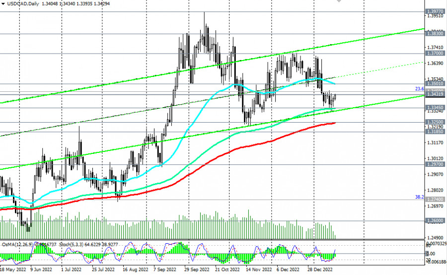 USD/CAD: сценарии динамики на 17.01.2023ИнстаФорекс - Instaforex, 2 года назад Находясь выше ключевых уровней поддержки 1.2970 (ЕМА200 на недельном графике), 1.3250 (ЕМА200 на дневном графике), 1.3345 (ЕМА144 на дневном графике), USD/CAD остается в зоне долгосрочного бычьего рынка. Как мы отметили в сегодняшнем «Фундаментальном анализе», сегодня в центре внимания участников рынка будет публикация (в 13:30 GMT) свежих данных по уровню инфляции в Канаде. Эта публикация станет новым драйвером движения CAD и пары USD/CAD. Данные лучше прогноза и предыдущих значений укрепят канадский доллар. Если же ожидаемые данные окажутся хуже предыдущих значений, то это негативно повлияет на CAD. В этом случае пробой важного краткосрочного уровня сопротивления 1.3432 (ЕМА200 на 1-часовом графике) станет первым сигналом для возобновления или наращивания длинных позиций. Ближайшая цель роста – уровень сопротивления 1.3500 (ЕМА200 на 4-часовом графике и ЕМА50 на дневном графике). В целом же преобладает восходящая динамика, и последовательный пробой уровней сопротивления 1.3500, 1.3600, 1.3700 подтвердит основной сценарий – рост USD/CAD в сторону максимумов прошлого года и отметки 1.3970. В альтернативном сценарии от уровня сопротивления 1.3432 произойдет отбой и пара USD/CAD снизится к уровню поддержки 1.3345, от которого можно будет планировать новые ордера на покупку. Лишь пробой уровней поддержки 1.3250, 1.3185 усугубит положение покупателей пары и повысит риски ее дальнейшего снижения в сторону ключевого уровня поддержки 1.2600 (ЕМА200, ЕМА144 на месячном графике), отделяющего долгосрочный бычий тренд USD/CAD от медвежьего.
