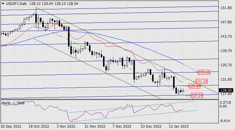 Прогноз по USD/JPY на 18 января 2022 годаИнстаФорекс - Instaforex, 2 года назад Пара USD/JPY с каждым днём усиливает разворотные признаки. Теперь это разворот сигнальной линии осциллятора Марлин от нижней границы собственного восходящего канала, подтверждённый разворот цены от вложенной линии глобального ценового канала в районе отметки 127.14, закрепление цены над срединной линией нисходящего ценового канала зелёного цвета.