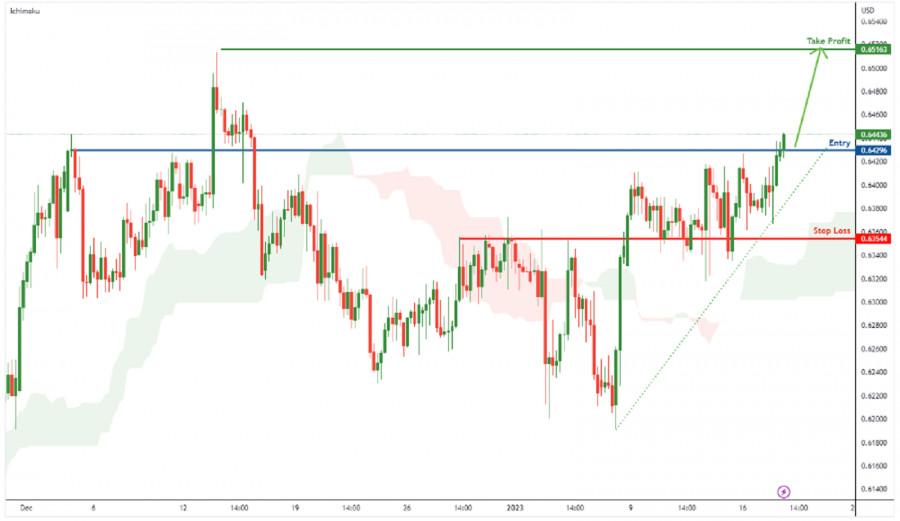 NZD/USD: возможен рост до уровня свинг-хай. Прогноз на 18 января 2023ИнстаФорекс - Instaforex, 2 года назад Пара NZD/USD только что пробила уровень поддержки 0.6429, который теперь является точкой входа на покупку. Ожидается, что цена может вырасти до уровня 0.6516, соответствующего недавнему уровню свинг-хай от 13 декабря 2022 года, выступающему в качестве сопротивления. Кроме того, стоит отметить восходящую линию поддержки и бычье облако Ишимоку, которые также указывают на бычий импульс. Торговая рекомендация Вход: 0.6429 Условия для входа: поддержка + бычий импульс от линии тренда и IKH Тейк-профит: 0.6516 Условия для фиксации прибыли: недавний уровень свинг-хай, выступающий в качестве сопротивления Стоп-лосс: 0.6354 Условия для активации ордера стоп-лосс: уровень поддержки Материал предоставлен компанией InstaForex - www.instaforex.com |