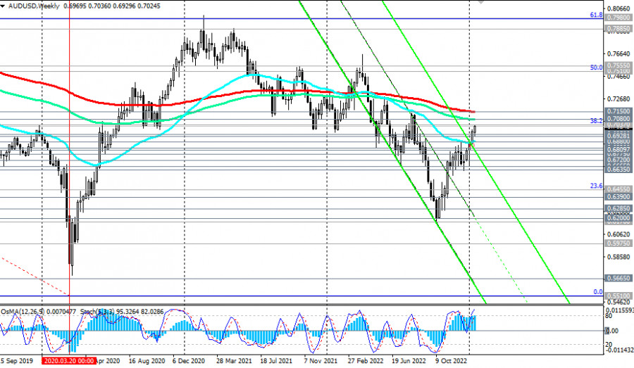 AUD/USD: краткие итоги и ближайшие перспективыИнстаФорекс - Instaforex, 2 года назад Уверенность австралийских потребителей в стабильности экономики страны и своего личного выросла в январе, несмотря на рост инфляции в стране. Так, согласно опубликованному во вторник индексу от Westpac, потребительские настроения в январе выросли на 5,0% (до 84,3%) после роста на 3% месяцем ранее. При этом индикатор от TD Securities, опубликованный в начале недели, указал на замедление темпов роста инфляции в декабре (+0,2% после роста на +1% в ноябре). Поддержку австралийскому доллару также оказывают данные из Китая, которые отразили хоть и замедление роста ВВП в 4-м квартале 2022 года (с 3,9% до 2,9%), но это оказалось лучше ожиданий аналитиков на уровне 1,8%, а также рост цен на сырьевые товары и золото: Австралия, как известно, является крупным экспортёром таких товаров, в частности каменного угля, сжиженного газа, железной руды, золота. В Китае также значительно смягчены антиковидные ограничения, что весьма позитивно должно отразиться на восстановлении китайской экономики, которая активно использует австралийское сырье. Недавно из Китая пришли новые сообщения о послаблениях относительно антиковидных ограничений, в частности отменяется обязательный тест ПЦР для въезда в страну, а граждане страны не будут больше обязаны соблюдать централизованную изоляцию. Завтра участники рынка, следящие за котировками AUD, получат новую порцию информации и пищу для размышлений: в 00:30 (GMT) будут опубликованы свежие данные с рынка труда Австралии. Ожидается очередной рост уровня занятости (на +22500 человек) и безработица на прежнем уровне 3,4% (предыдущие значения показателя 3,4% в ноябре и октябре, 3,5% в сентябре и августе, 3,4% в июле, 3,5% в июне, 3,9% в мае, апреле и марте, 4,0% в феврале, 4,2% в январе). Рост показателя уровня занятости и снижение (или низкий уровень) безработицы является позитивным фактором для AUD. Если значения показателей из данного отчета окажутся хуже прогноза, то австралийский доллар может краткосрочно резко снизиться. Данные лучше прогноза позитивно повлияют на AUD и пару AUD/USD соответственно. А сегодня участники рынка будут изучать отчет Бюро переписи США с данными по розничным продажам. На потребительские расходы приходится большая часть общей экономической активности населения, в то время как внутренняя торговля составляет наибольшую часть роста ВВП. Относительное, как ожидается, снижение показателя может оказать краткосрочное негативное влияние на доллар. Также в это же время будет представлена статистика по ценам американских производителей в декабре. Опережающий индикатор Producer Price Index (PPI) – это один из ведущих показателей инфляции в США, оценивающий среднее изменение оптовых цен производителей. Предыдущие значения показателя: +0,3% (+7,4% в годовом выражении), +0,4% (+8,5% в годовом выражении),-0,1% (+8,7% в годовом выражении), -0,5% (+9,8% в годовом выражении), +1,1% (+11,3% в годовом выражении), +0,8% (+10,8% в годовом выражении), +0,4% (+10,9% в годовом выражении), +1,6% (+11,5% в годовом выражении), +0,9% (+10,3% в годовом выражении), +1,2% (+10,0% в годовом выражении) в январе 2022 года. Прогноз на декабрь: -0,1% (+6,8% в годовом выражении). Данные свидетельствуют о продолжающемся ослаблении инфляционного давления, в том числе на ФРС при принятии ею очередного решения по монетарной политике. Если данные окажутся лучше прогноза (выше прогноз