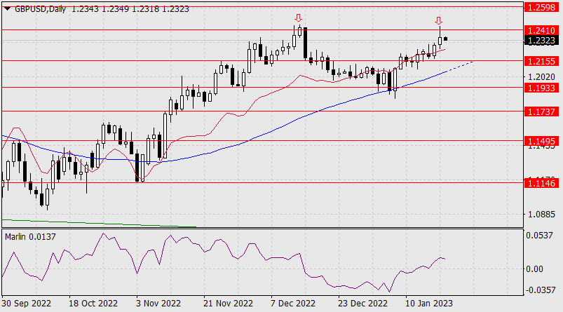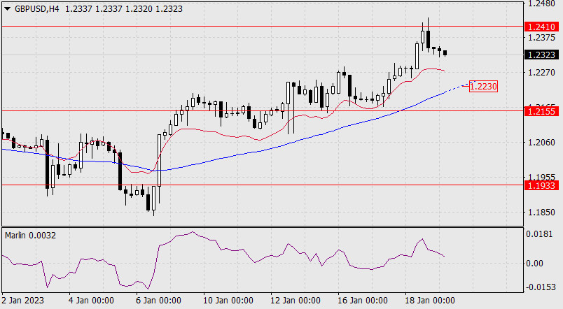 Поэтому ждём ухода цены под индикаторную линию, ниже отметки 1.2230, затем следим за основной борьбой в районе 1.2155. Это основной сценарий. |