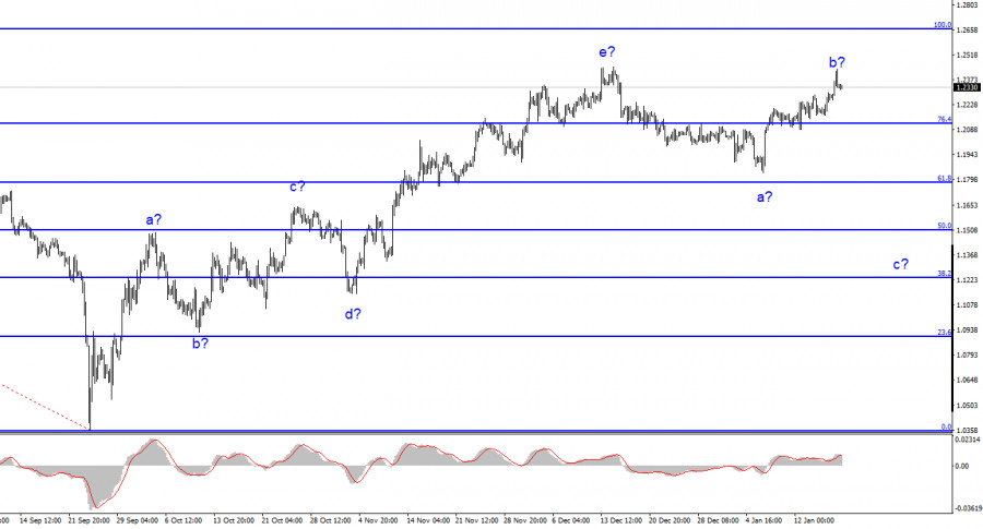 Анализ GBP/USD. 19 января. Британец находится на грани отмены волны bИнстаФорекс - Instaforex, 2 года назад По инструменту Фунт/Доллар волновая разметка на данный момент выглядит довольно сложно, но тоже не требует внесения уточнений и начинает существенно отличаться от разметки инструмента Евро/Доллар. Мы имеем пятиволновой повышательный участок тренда, который принял вид a-b-c-d-e и, вероятно, уже завершен. В случае с британцем вероятность завершения повышательного участка тренда существенно выше, так как в период с 15 декабря по 6 января наблюдался довольно активный отход котировок от ранее достигнутых максимумов. Таким образом, я могу сделать вывод, что начал свое построение понижательный участок тренда, который примет минимум трех волновой вид. И повышение котировок инструмента в последние несколько дней может быть волной b в составе этого участка тренда, который может принять и пятиволновой, и импульсный пятиволновой. Но снижение британца должно продолжаться, так как пока что построена лишь одна нисходящая волна, и она приняла далеко не самый протяженный и убедительный вид. Безусловно, повышательный участок тренда может усложняться бесконечное число раз и принимать любой по протяженности вид, однако такой сценарий не является классическим. Я все же стараюсь отталкиваться от стандартных волновых структур, по которым можно делать прогнозы и работать. Инфляция в Великобритании застыла на местеКурс инструмента Фунт/Доллар в среду повысился на 60 базовых пунктов. Британец мог прибавить в цене и гораздо больше, но во второй половине дня все-таки начался отход котировок от достигнутых пиков. Этот отход и является практически последней надеждой на сохранение текущей волновой разметки. Если сегодня или завтра повышение инструмента продолжится, то волна b поменяет маркировку, а весь повышательный участок тренда примет еще более сложный вид. Пока этого не произошло, я надеюсь на снижение котировок, так как на этой неделе все наиболее важные новости для британца уже состоялись. Но настроение рынка может не поменяться из-за одного факта отсутствия новостного фона в четверг и пятницу. Отчет по инфляции в Великобритании не показал существенных изменений в декабре по сравнению с ноябрем. Индекс потребительских цен замедлился с 10,7% г/г до 10,5% г/г. Базовая инфляция осталась на отметке 6,3%, не показав никакого снижения вовсе. Таким образом, падение инфляции получилось формальным. На самом деле замедление на 0,2% — это практически то же самое, что и отсутствие всякого замедления. Рынок тут же сделал вывод, что инфляция не снижается даже после роста ставки Банка Англии до 3,5%, а также вывод, что нас ждет повышение в начале февраля на 50 базисных пунктов, не меньше. На основании этого вывода спрос на британскую валюту и рос в течение вчерашнего дня. Теперь этот фактор может считать учтенным, а спрос на британца может потихоньку снижаться. Общие выводыВолновая картина инструмента Фунт/Доллар по-прежнему предполагает построение понижательного участка тренда. В данное время можно рассматривать продажи с целями, находящимися около отметки 1,1508, что приравнивается к 50,0% по Фибоначчи, по разворотам индикатора MACD «вниз». Повышательный участок тренда еще может принять более протяженный, чем сейчас, вид, но, скорее всего, он завершен. Однако нужно быть осторожны