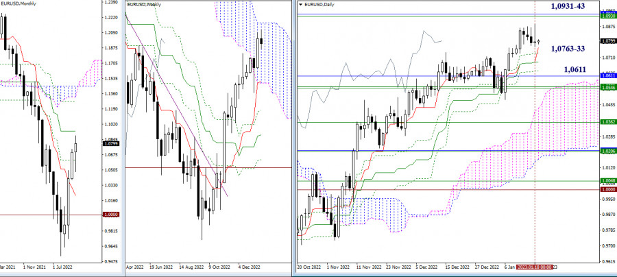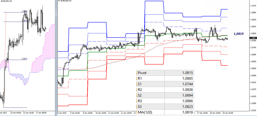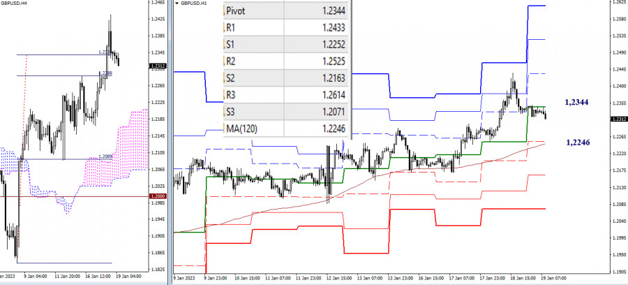 EUR/USD и GBP/USD 19 января – технический анализ ситуацииИнстаФорекс - Instaforex, 2 года назад EUR/USD Старшие таймфреймы Вчера дневной максимум был обновлён, но результативность движения вновь отсутствовала, поэтому можно сделать вывод, что доминирует неопределённость. Ближайшим важным районом сопротивления является сейчас объединение верхней границы недельного облака (1,0931) и месячного среднесрочного тренда (1,0943). Надёжное закрепление выше позволит рассматривать новые перспективы для развития ситуации. Поддержки дневного креста Ишимоку сегодня изменили конфигурацию и расположились следующим образом 1,0763 – 1,0733 – 1,0685 – 1,0637. Дневную зону поддержек по-прежнему замыкает скопление уровней месяца (1,0611) и недели (1,0555 – 1,0546). Н4 – Н1 Неопределённость старших таймфреймов хорошо читается на младших временных интервалах. Пара закручивается вокруг ключевых уровней, которые сегодня объединили свои усилия на рубеже 1,0819 (недельная долгосрочная тенденция + центральный Пивот уровень). Работа выше уровней отдаёт предпочтение и формирует значительную вероятность на развитие бычьих настроений. Работа ниже уровней в большей мере имеет предпосылки для развития медвежьих настроений. Ориентирами для игроков на понижение сегодня внутри дня служат поддержки классических Пивот уровней 1,0744 – 1,0694 – 1,0623. Ориентирами для игроков на повышение являются 1,0865 – 1,0936 – 1,0986 (сопротивления классических Пивот уровней). *** GBP/USD Старшие таймфреймы Вчера игроки на повышение реализовывали подъём к важному рубежу данного участка 1,2457 (нижние границы недельного и месячного облака), но дотянуться до сопротивлений не получилось. Район 1,2457 по-прежнему остаётся главным сопротивлением, преодоление которого откроет перед игроками на повышение новые перспективы. Месячный среднесрочный тренд 1,2302 сейчас оказывает притяжение и сдерживает развитие ситуации. Ниже расположены поддержки дневного креста Ишимоку (1,2259 – 1,2208 – 1,2138). Н4 – Н1 В своём стремлении к более высокой цели пара не просто отработала цель на пробой облака Н4, но и вышла за её приделы. Сейчас пара вернулась под центральный Пивот уровень дня (1,2344) и находится пока в зоне его притяжения. Далее важное значение имеет тестирование самого главного уровня младших таймов – недельной долгосрочной тенденции (1,2246). Закрепление ниже и разворот мувинга способны изменить действующий баланс сил. В этом случае внимание игроков на понижение будет устремлено на 1,2163 и 1,2071 (поддержки классических Пивот уровней). Если же игрокам на повышение сейчас удастся удержать ситуацию и продолжить подъём, то сегодня внутри дня их ждут сопротивления классических Пивот уровней 1,2433 – 1,2525 – 1,2614. *** При техническом анализе ситуации используются: старшие таймфреймы – Ichimoku Kinko Hyo (9.26.52) + уровни Фибо Киджун; младшие таймфреймы – Н1 – Pivot Points (классические) + Moving Avarage 120 (недельная долгосрочная тенденция). Материал предоставлен компанией InstaForex - www.instaforex.com |