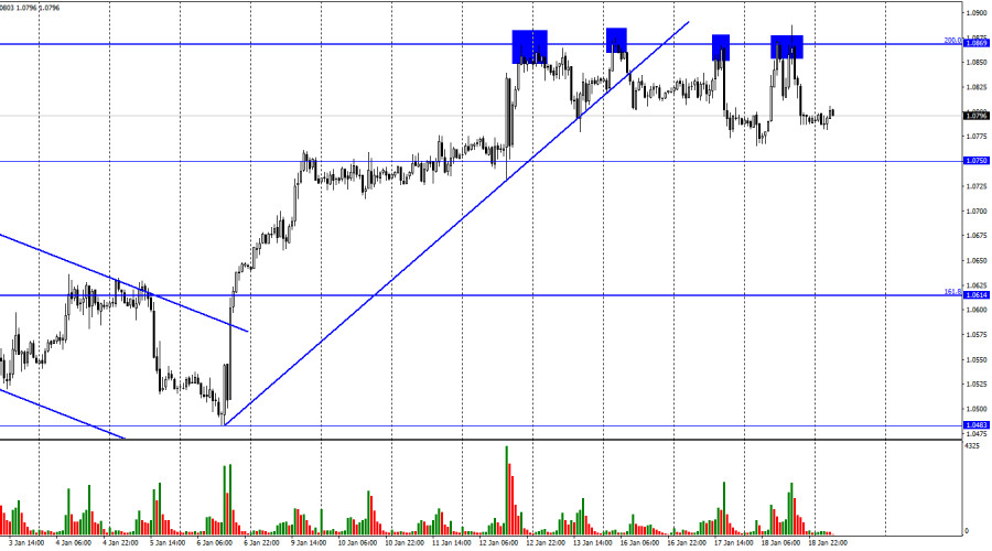 EUR/USD. 19 января. Трейдеры-быки не могу преодолеть уровень 1,0869