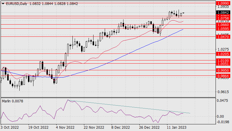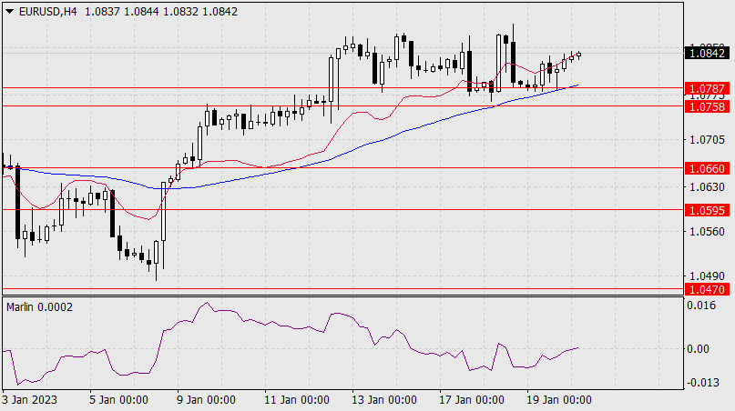 Прогноз по EUR/USD на 20 января 2022 годаИнстаФорекс - Instaforex, 2 года назад Вчерашняя повторная попытка евро преодолеть диапазон поддержки 1.0758/87, как и в предшествующий день, оказалась неудачной. Цена подросла на 38 пунктов. Теперь, как и в среду, у пары EUR/USD появился шанс к росту до целевого уровня 1.0990. Шанс мал, основной сценарий остаётся понижающимся, с преодолением диапазона и закреплением под ним. Вероятность роста повысится лишь со сломом дивергенции дневного масштаба. Это может произойти с преодолением вершины 18 января 1.0887.