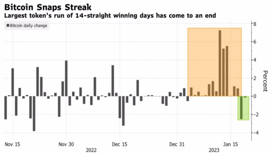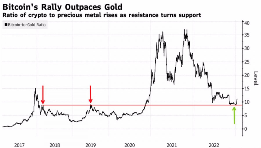Биткойн восстал из пеплаИнстаФорекс - Instaforex, 2 года назад У криптоиндустрии есть две стороны: мошенники и лохи. Когда первых выводят на чистую воду, они могут организовать новый проект. Но все это вовсе не означает, что на криптовалютах нельзя заработать. 27%-е ралли BTCUSD доказывает, что можно. Биткойн продемонстрировал лучшую недельную динамику с февраля 2021 и одновременно отметился самым продолжительным ралли с ноября 2013. Если он закроет январь на текущих уровнях, это станет вторым результатом в истории после 31%-го ралли по итогам первого месяца 2020. Дневная динамика биткойна Успехи «быков» по BTCUSD привели к росту капитализации сектора криптовалют с $830 млрд до $1 трлн. Цифра все еще очень далека от своего пика в $3,2 трлн, имевшего место в ноябре 2021, однако поклонники токена уверены: лиха беда начало! На самом деле нервозность, характерная для крипторынка в 2022, никуда не исчезла в 2023. Точно так же, как новости о банкротстве FTX будоражили умы инвесторов в прошлом году, сейчас они обеспокоены аналогичной процедурой со стороны криптоплатформы Genesis, дочерней компании Digital Currency Group. Можно долго убеждать себя, что Genesis – это последняя костяшка домино, упавшая после инициировавшей начало заражения Terra, и что ее банкротство уже заложено в котировках BTCUSD, но разве можно этому верить? Старые мошенники найдут возможность создавать новые проекты. Впрочем, ралли биткойна убеждает, что люди больше склонны высказывать «медвежьи» взгляды, а действовать по-бычьи. По бирже Binance средние объемы сделок с анализируемой парой увеличились с $700 до $1100, что может свидетельствовать, что киты все чаще начинают заглядывать на крипторынок. Неудивительно, ведь биткойн опережает даже отлично стартовавшее золото, а прежнее сопротивление в их соотношении превратилась в мощную поддержку. Похоже, BTCUSD все-таки нащупала дно. Динамика соотношения биткойна и золота На мой взгляд, главным драйвером ралли лидера сектора криптовалют является изменившийся макроэкономический фон. Замедление скорости ужесточения денежно-кредитной политики ФРС внушает надежду на мягкую посадку экономики США. Падение цен на газ позволяет европейской экономике приятно удивлять всех, включая ЕЦБ. Наконец, открытие Китая настраивает поклонников доходных активов на мажорный лад. Деньги текут в акции и облигации, а также на развивающиеся рынки. И биткойн является одним из главных бенефициаров улучшения глобального аппетита к риску. Его лидерство обусловлено заниженными ожиданиями. Криптозима с ее сокращением капитализации более чем на $2 трлн и падением котировок BTCUSD на 70% превратила биткойн в рынок пессимистов. Когда погода чуть улучшилась, они сразу переобулись. Технически выход анализируемого актива из диапазона консолидации 15500-18000 – хороший знак для быков. Они контролируют ситуацию. Закрепление BTCUSD выше пивот-уровней 20590 и 20670 – этому подтверждение. Ралли рискует возобновиться в случае прорыва выше 21200. Материал предоставлен компанией InstaForex - www.instaforex.com |