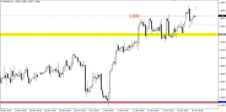 Учимся и анализируем, торговый план для начинающих трейдеров EURUSD и GBPUSD 24.01.23ИнстаФорекс - Instaforex, 2 года назад Детали экономического календаря от 23 января Понедельник традиционно сопровождался пустым макроэкономическим календарем. Важные статистические данные по Великобритании, Евросоюзу и Соединенным Штатам не публиковали. Разбор торговых графиков от 23 январяВалютная пара EURUSD после очередного обновления локального максимума восходящего тренда достигла значения 1.0927, относительно которого возник откат. Несмотря на сокращение объема длинных позиций по евро, восходящий настрой все еще преобладает на рынке. Валютная пара GBPUSD третий торговый день подряд движется в рамках боковой амплитуды 1.2300/1.2440, что может указывать на процесс накопления торговых сил. Стоит отметить, что действующий застой возник на пике восходящего тренда. Экономический календарь на 24 январяСегодня ожидается публикация предварительных данных по деловой активности. Так вот, в Европе и Великобритании ожидают положительные данные, что может сыграть на курсе евро и фунта стерлингов. В то время как в соединенных Штатах показатели выйдут хуже, что негативно может сказаться на курсе доллара. Стоит отметить, что показатели могут разойтись с прогнозом, в этом случае мы увидим обратную реакцию на рынке. Временной таргетинг Индексы деловой активности в ЕС – 12:00 по МСК Индексы деловой активности в Великобритании – 12:30 по МСК Индексы деловой активности в США – 17:45 по МСК Торговый план – ЕВРО/ДОЛЛАР 24 январяДля возобновления восходящего цикл по евро котировке необходимо вернуться выше значения 1.0900 в четырехчасовом периоде. В этом случае возможен новый виток роста объема длинных позиций, что приведет к обновлению локального максимума. Что касается нисходящего сценария, то пролонгация действующего отката может возникнуть в случае удержания цены ниже значения 1.0840. Этот шаг может открыть перед продавцами путь по направлению уровня 1.0800. Торговый план – ФУНТ/ДОЛЛАР 24 январяВ данной ситуации наиболее оптимальной тактикой считается метод исходящего импульса. При котором пробой той или иной границы застоя может указать на последующий путь цены. Конкретизируем выше сказанное: Нисходящий ход будет актуален в случае удержания цены ниже уровня 1.2300 в четырехчасовом периоде. Этот шаг может привести к формированию полноразмерной коррекции. Восходящий ход по валютной паре принимаются во внимание в случае стабильного удержания цены выше значения 1.2450 в четырехчасовом периоде. Этот шаг укажет на пролонгацию восходящего тренда. Что отражено на торговых графиках?