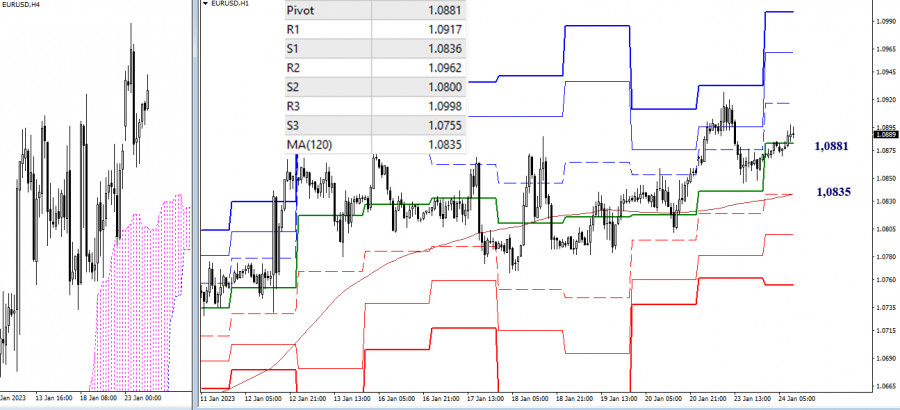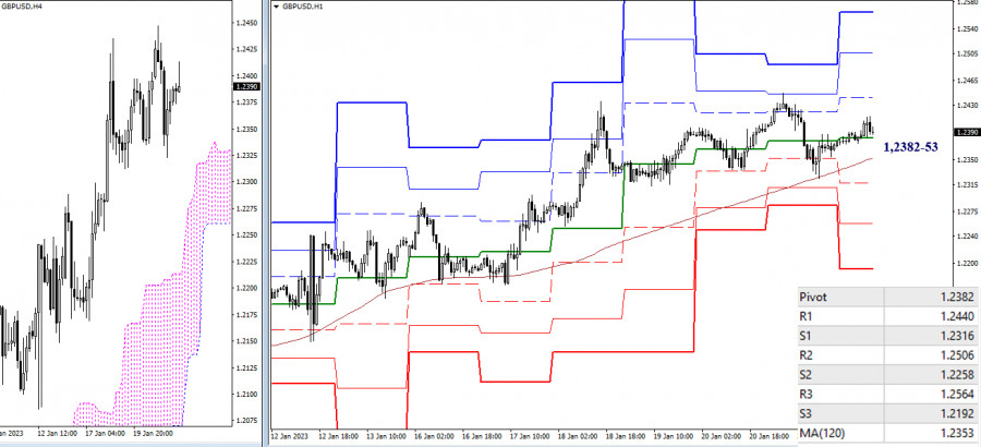 EUR/USD и GBP/USD 24 января – технический анализ ситуацииИнстаФорекс - Instaforex, 2 года назад EUR/USD Старшие таймфреймы Начав новую рабочую неделю, игроки на повышение устремились к важному рубежу сопротивлений данного участка 1,0931-43 (верхняя граница недельного облака + месячный среднесрочный тренд). При тестировании на дневном графике появилась свеча Доджи, но сила уровней предполагает формирование результата на более старших временных интервалах. Преодоление рубежей 1,0931-43 и надёжное закрепление выше обозначит новые перспективы. Если развитие получит отбой, то внимание будет направлено на понижательные ориентиры. Первыми в работу в этом случае вступят поддержки дневного креста Ишимоку (1,0829 – 1,0757 – 1,0705 – 1,0653). Н4 – Н1 На младших таймфреймах, несмотря на развивающееся снижение, основное преимущество остаётся на стороне игроков на повышение, так как пара находится выше недельной долгосрочной тенденции, которая сегодня расположена на 1,0835. Повышательными ориентирами внутри дня сейчас служат сопротивления классических Пивот уровней 1,0917 – 1,0962 – 1,0998. Пробой недельной долгосрочной тенденции (1,0835) и разворот мувинга изменят действующий баланс сил. Дополнительные ориентиры для снижения внутри дня в настоящий момент можно обозначить на 1,0800 – 1,0755. *** GBP/USD Старшие таймфреймы Пара продолжает тестировать зону влияния (1,2457) таких сильных уровней, как верхние границы облаков Ишимоку месячного и недельного таймфреймов. Результат взаимодействия будет определять дальнейшее развитие ситуации. Пробой рубежа откроет новые перспективы перед игроками на повышение. Отбой будет способствовать усилению медвежьих настроений. Ближайшие поддержки можно отметить на 1,2266 – 1,2302 (дневной краткосрочный тренд + месячный среднесрочный тренд). Н4 – Н1 Начиная со вчерашнего дня, пара тестирует на прочность ключевые уровни младших таймов. Сегодня они объединяют свои усилия в районе 1,2382-53 (центральный Пивот уровень + недельная долгосрочная тенденция). Пока идёт работа выше ключевых уровней присутствует преимущество игроков на повышение. Ориентиры для продолжения подъёма внутри дня сегодня расположены на 1,2440 – 1,2506 – 1,2564 (сопротивления классических Пивот уровней). Закрепление ниже и разворот мувинга передаст преимущества на сторону игроков на понижение, чьи ориентиры сейчас можно отметить на рубежах поддержек классических Пивот уровней 1,2316 – 1,2258 – 1,2192. *** При техническом анализе ситуации использованы: старшие таймфреймы – Ichimoku Kinko Hyo (9.26.52) + уровни Фибо Киджун; младшие таймфреймы – Н1 – Pivot Points (классические) + Moving Avarage 120 (недельная долгосрочная тенденция). Материал предоставлен компанией InstaForex - www.instaforex.com |