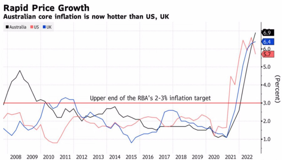 Три причины купить австралийский долларИнстаФорекс - Instaforex, 2 года назад Сильные данные по инфляции позволили австралийскому доллару упрочить лидерство в гонке валют G10. Он вырос уже на 4,2% с начала 2022 и создал приличный гандикап с занимающим второе место «новозеландцем» благодаря растаявшим надеждам на паузу в процессе ужесточения денежно-кредитной политики Резервного банка, открытию китайской экономики и надеждам, что глобальной рецессии можно избежать. Рост аппетита к риску поддерживает AUDUSD ничуть не меньше, чем позитив из Поднебесной. В четвертом квартале австралийская инфляция разогналась до 33-летнего максимума в 7,8%, превысив прогнозы экспертов Bloomberg в 7,6%. Пусть показатель меньше ожидаемых RBA 8%, однако его динамика остается восходящей. Пик, в отличие от других развитых стран, еще не достигнут. Значит, у Резервного банка больше работы, чем у его конкурентов, что позволяет AUDUSD продолжать ралли. Динамика инфляции в Австралии и других странах В декабре потребительские цены ускорились до 8,4%. Базовая инфляция в четвертом квартале также превзошла оценки, разогнавшись до 6,9%, а в секторе услуг был зафиксирован самый большой рост с 2008. Стоимость отдыха внутри страны подскочила на 13%, за ее пределами – на 8%. Такая динамика индикаторов позволила срочному рынку увеличить шансы повышения cash rate на 25 б.п., до 3,35%, в феврале до 90% и заложить фундамент для еще одного роста стоимости заимствований на четверть пункта в марте. Вероятность паузы в цикле ужесточения денежно-кредитной политики RBA резко снизилась, что стало катализатором ралли AUDUSD выше 0,71. На мой взгляд, рынки правильно оценивают перспективы австралийского доллара. Его тесная связь с Китаем позволяет получать преференции сразу по трем направлениям. Во-первых, «оззи» рассматривается как прокси-валюта для Поднебесной. Тот, кто не хочет торговать юанем, покупает «австралийца». Во-вторых, «оззи» – это товарная денежная единица, а перспективы рынка сырья в свете потенциального роста спроса со стороны крупнейшего потребителя выглядят однозначно «бычьими». Наконец, в-третьих, австралийский доллар – это рискованная валюта, и ралли мировых фондовых индексов играет ей на руку. Одновременно «быки» по AUDUSD извлекают выгоду из слабости доллара США. Срочный рынок продолжает делать ставку на «голубиный» разворот ФРС в 2023, и ухудшение макроэкономической статистики по Штатам этому способствует. Инвесторы задают себе вопрос: в какой момент политика зависимости от данных вынудит Федрезерв уменьшить стоимость заимствований? Отдельные трейдеры уже начинают страховать риски, что американский Центробанк не станет повышать ставку по федеральным фондам в марте, закончив цикл ужесточения денежно-кредитной политики в феврале. Технически на дневном графике AUDUSD продолжается реализация паттерна AB=CD. Его целевой ориентир на 261,8% соответствует озвученной в предыдущем материале отметке 0,731. Именно туда пара и направляется, создавая возможность для покупок. Материал предоставлен компанией InstaForex - www.instaforex.com |
