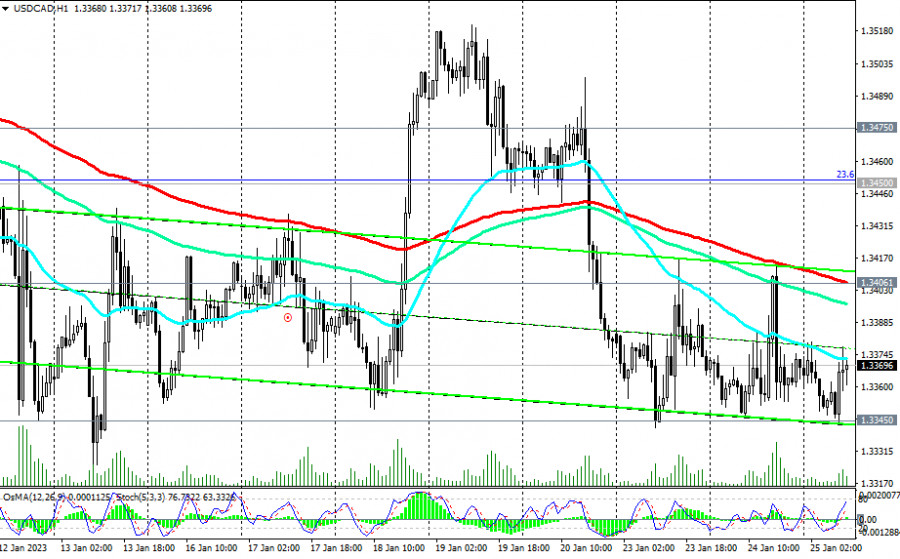 USD/CAD: сценарии динамики на 25.01.2023ИнстаФорекс - Instaforex, 2 года назад Находясь выше ключевых уровней поддержки 1.2990 (ЕМА200 на недельном графике), 1.3250 (ЕМА200 на дневном графике), 1.3345 (ЕМА144 на дневном графике), USD/CAD остается в зоне долгосрочного бычьего рынка. Как мы отметили в сегодняшнем «Фундаментальном анализе», сегодня в центре внимания участников рынка будет публикация (в 15:00 GMT) решения Банка Канады по процентной ставке и его пресс-конференция, которая начнется в 16:00. Эти события станут новым драйвером движения CAD и пары USD/CAD. Если сегодняшнее решение Банка Канады разочарует участников рынка, оказавшись мягким, то вблизи текущих отметок и уровня поддержки 1.3345 произойдет отбой и возобновление роста USD/CAD. В этом случае пробой важного краткосрочного уровня сопротивления 1.3406 (ЕМА200 на 1-часовом графике) станет первым сигналом для возобновления или наращивания длинных позиций. Ближайшая цель роста – уровень сопротивления 1.3475 (ЕМА200 на 4-часовом графике и ЕМА50 на дневном графике). В целом же преобладает восходящая динамика, и последовательный пробой уровней сопротивления 1.3500, 1.3600, 1.3700 подтвердит основной сценарий – рост USD/CAD в сторону максимумов прошлого года и отметки 1.3970. В альтернативном сценарии и после пробоя уровня поддержки 1.3345 USD/CAD снизится к уровням поддержки 1.3250, 1.3200 от которых можно будет планировать новые ордера на покупку. Пробой же уровня поддержки 1.2990 усугубит положение покупателей пары и повысит риски ее дальнейшего снижения в сторону ключевого уровня поддержки 1.2600 (ЕМА200, ЕМА144 на месячном графике), отделяющего долгосрочный бычий тренд USD/CAD от медвежьего. *) о важных событиях недели см. в Важнейшие экономические события недели 23.01.2023 – 29.01.2023 **) об особенностях торговли USD/CAD см. в USD/CAD: валютная пара (характеристики, рекомендации) Уровни поддержки: 1.3345, 1.3300, 1.3250, 1.3200, 1.3185, 1.3100, 1.2990 Уровни сопротивления: 1.3406, 1.3450, 1.3475, 1.3500, 1.3600, 1.3700, 1.3800, 1.3830, 1.3900, 1.3970, 1.4000