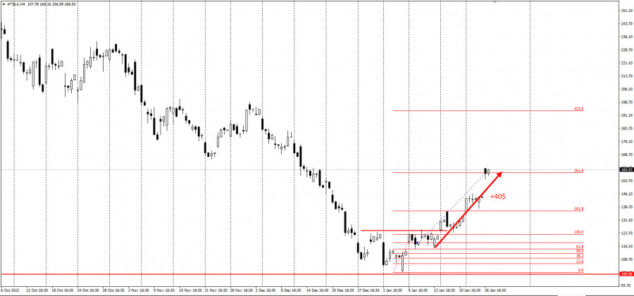 Tesla "стрельнула" на отчёте. Забирайте рекордную прибыль!ИнстаФорекс - Instaforex, 2 года назад Добрый день, уважаемые трейдеры! Представляю вашему вниманию отработку торговой идеи по Tesla. Вчера Tesla опубликовала финансовые результаты за IV квартал 2022 г. Выручка: $24,32 млрд (+37% г/г) — немного выше ожиданий Уолл-стрит — $24,16 млрд. Акции поднялись на 0,4% в основную сессию, а на постмаркете взлетели на 5,5%, до $152,4. Напоминаем, что 11 января мы давали торговую идею на рост Tesla в рамках следующего плана: Вчера после выхода хорошего отчёта акции компании резко взлетели в цене до 160$. Поздравляем тех, кто воспользовался нашей торговой идеей! Средний рост инструмента составил более 40$. Рекомендуем закрыть позиции с профитом! Торговая идея представлена в рамках метода "Price Action" и "Импульсного метода торговли". |