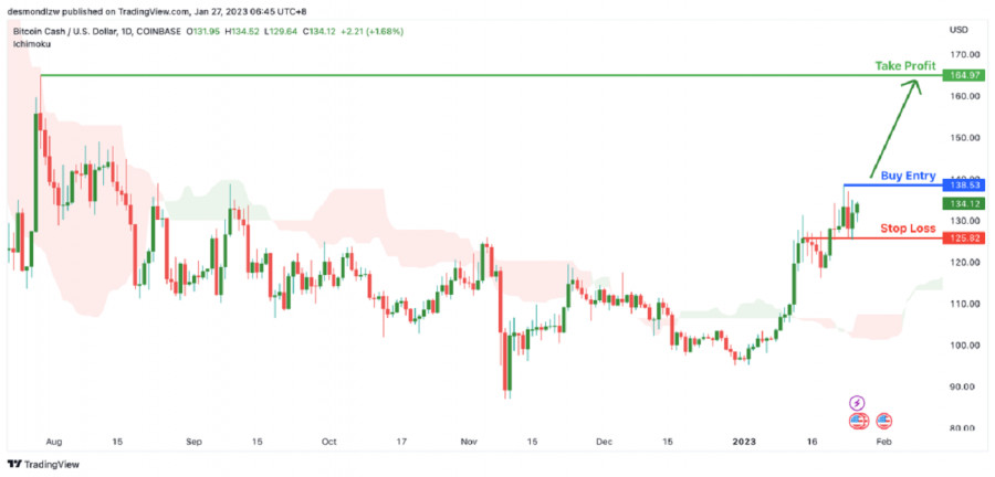 BCH/USD: возможен рост до уровня свинг-хай. Прогноз на 27 января 2023 г.ИнстаФорекс - Instaforex, 2 года назад На 4-часовом графике пара BCH/USD торгуется в бычьем тренде. В настоящее время цена находится выше облака Ишимоку, что указывает на восходящий импульс. Рекомендуется искать вход на покупку на уровне 138.53, где находится недавний максимум. Прибыль может быть зафиксирована на уровне 164.97, соответствующем предыдущему уровню свинг-хай. Стоп-лосс ордер может быть установлен на уровне 125.82, где расположен предыдущий уровень поддержки. Торговая рекомендация Вход: 138.53 Условия для входа: недавний максимум Тейк-профит: 164.97 Условия для фиксации прибыли: предыдущий уровень свинг-хай Стоп-лосс: 125.82 Условия для активации ордера стоп-лосс: предыдущий уровень поддержки Материал предоставлен компанией InstaForex - www.instaforex.com |