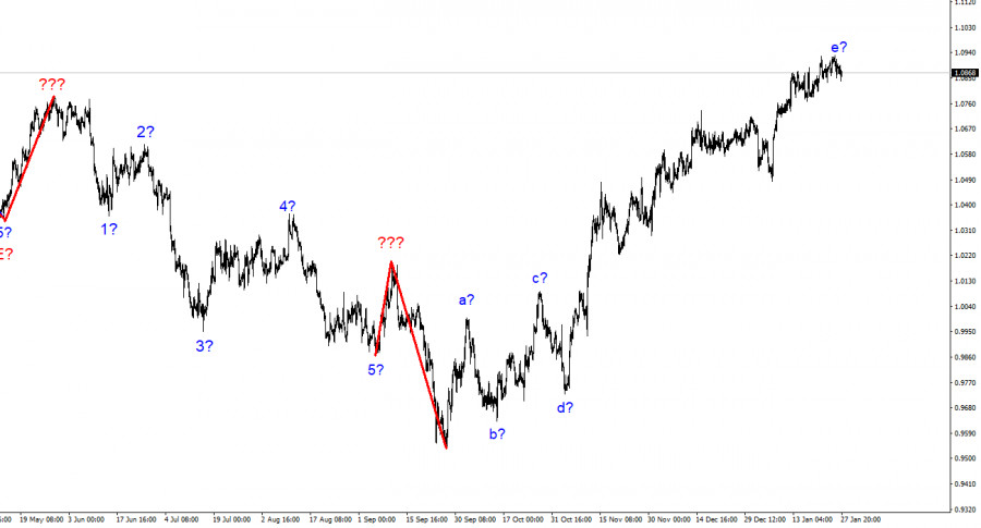 Анализ EUR/USD. 28 января. Рынок готовится к снижению спроса на инструментИнстаФорекс - Instaforex, 2 года назад Волновая разметка 4-часового графика для инструмента Евро/Доллар абсолютно не меняется в последнее время и по-прежнему усложняется, а весь повышательный участок тренда продолжает оставаться чрезмерно протяженным. Он принял ярко выраженный коррекционный (хотя его протяженность больше подходит для импульсного участка) и слишком сложный вид. Мы получили структуру волн a-b-c-d-e, в которой волна e имеет гораздо более сложный вид, чем первые четыре волны. Если текущая волновая разметка верна, то построение этой структуры может близиться к своему завершению, так как пик волны e намного превышает пик волны с. В этом случае нас ожидает построение минимум трех волн вниз, поэтому я по-прежнему готовлюсь к снижению инструмента. В первые три недели 2023 года спрос на евровалюту рос, а инструмент за этот период сумел один раз лишь немного отойти вниз от ранее достигнутых пиков. Неудачная попытка прорыва отметки 1,0953, что соответствует 161,8% по Фибоначчи, укажет на предположительную готовность рынка к снижению спроса на инструмент. К сожалению, построение коррекционного участка тренда пока откладывается. Отход котировок от достигнутых максимумов минималенИнструмент Евро/Доллар в пятницу снизился на 25 базовых пунктов, а амплитуда была невысокой. В течение дня новостной фон был достаточно скудный, но кое-что все же было. В Евросоюзе состоялось новое выступление Кристин Лагард, которое по своему содержанию мало чем отличалось от предыдущих выступлений. Все, о чем говорила президент ЕЦБ, мы уже слышали много раз. Так как ставка ЕЦБ очень сильно опаздывает за ставками ФРС и Банка Англии, то именно от европейского регулятора рынок сейчас ждет наиболее «ястребиных» решений. Я не исключаю, что именно на основании этих ожиданий спрос на евровалюту и продолжал расти в последние недели. Напомню, что от ФРС рынок ждет замедления темпов повышения процентной ставки до 25 базисных пунктов. В Америке в пятницу стало известно, что личные доходы физических лиц выросли на 0,2% м/м, а личные расходы сократились на 0,2% м/м. Оба этих значения почти совпали с ожиданиями рынка. Также вышел базовый индекс цен расходов на личное потребление и индекс настроения потребителей от университета Мичиган. Но вы, уважаемые читатели, посмотрите на названия этих показателей. Можно ли от них ожидать серьезной реакции рынка? Вот и я считаю, что нет. Хочу напомнить, что экономической статистики в каждой стране огромное количество, но нас интересует только наиболее важная, которая способна повлиять на настроение рынка. Следует признать, что пятничная статистика такой способностью не обладала. Более того, статистика в четверг тоже не повлияла на настроение рынка, а там были куда более важные и интересные отчеты. ВВП в четвертом квартале в США вырос на 2,9%, а количество заказом на товары длительного использования – на 5,6%. Спрос на валюту США после всех этих данных вырос лишь формально. Общие выводыИсходя из проведенного анализа, я делаю вывод, что построение восходящего участка тренда близится к своему завершению. Таким образом, сейчас можно рассматривать продажи с целями, расположенными около расчетной отметки 1,0350, что соответствует 261,8% по Фибоначчи, по сигналам MACD «вниз». Существует вер