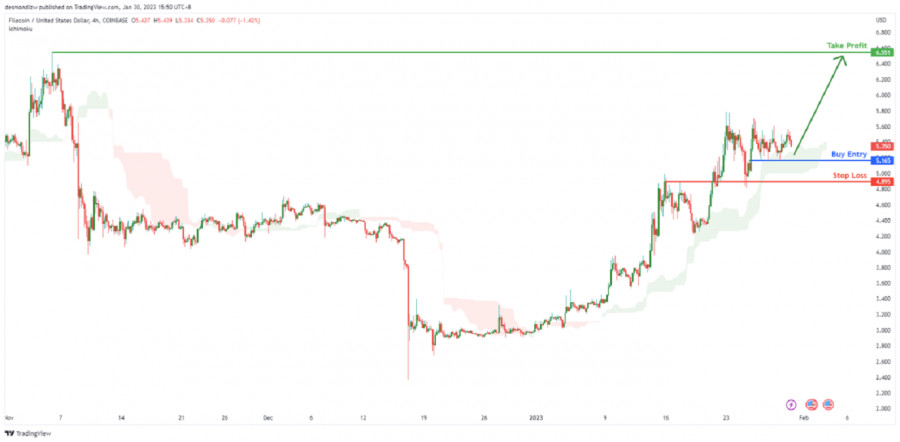 FIL/USD: ожидается бычий отскок до уровня свинг-хайИнстаФорекс - Instaforex, 2 года назад На 4-часовом графике пара FIL/USD торгуется в бычьем тренде. В настоящее время цена находится выше облака Ишимоку, что указывает на восходящий импульс. Рекомендуется искать вход на покупку на уровне 5.165, где расположена промежуточная поддержка. Стоп-лосс ордер может быть расположен на отметке 4.895, соответствующей уровню поддержки. Прибыль может быть зафиксирована на уровне 6.551, где расположен предыдущий уровень свинг-хай. Торговая рекомендация Вход: 5.165 Условия для входа: промежуточная поддержка Тейк-профит: 6.551 Условия для фиксации прибыли: предыдущий уровень свинг-хай Стоп-лосс: 4.895 Условия для активации ордера стоп-лосс: предыдущий уровень поддержки Материал предоставлен компанией InstaForex - www.instaforex.com |