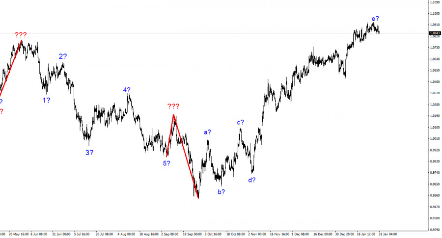 Анализ EUR/USD. 31 января. Доллар ждет «ястребиных» сигналов от ФРС.ИнстаФорекс - Instaforex, 2 года назад Волновая разметка 4-часового графика для инструмента Евро/Доллар абсолютно не меняется в последнее время и остается сложной. Повышательный участок тренда принял ярко выраженный коррекционный(хотя его размер больше подходит для импульсного участка) и слишком протяженный вид. Мы получили структуру волн a-b-c-d-e, в которой волна e имеет гораздо более сложный вид, чем первые четыре волны. Если текущая волновая разметка верна, то построение этой структуры может близится к своему завершению, так как пик волны e намного превышает пик волны с. В этом случае нас ожидает построение минимум трех волн вниз, поэтому я по-прежнему готовлюсь к снижению инструмента. В первые недели 2023 года спрос на евровалюту либо рос, либо оставался стабильно высоким, а инструмент за этот период времени сумел один раз лишь немного отойти вниз от ранее достигнутых пиков. Неудачная попытка прорыва отметки 1,0953, что соответствует 161,8% по Фибоначчи, укажет на предположительную готовность рынка к снижению спроса на инструмента. К сожалению, построение коррекционного участка тренда пока задерживается. Надежд на ФРС мало, но надежда умирает последней.Инструмент Евро/Доллар в понедельник снизился на 20 базовых пунктов, а амплитуда была невысокой в течение дня. Как я уже говорил, амплитуда в последнее время довольно сильно понизилась, но я думаю, что это нормальная реакция рынка на совершенно пустой новостной фон. Рынок в январе активно отыгрывал собственные ожидания. Можно сказать, что отправной точкой для нового снижения американской валюты стал отчет по инфляции в США, после которого большинство решило, что ФРС вновь понизит темпы ужесточения политики. Однако с тех пор прошло уже несколько недель, а спрос на валюту США не растет даже в рамках коррекционного отката. На мой взгляд, поведение рынка достаточно странное, так как коррекции – это неотъемлемая часть любого участка тренда. Она в любом случае должна произойти. Но для этого нужно, чтобы новостной фон поддержал доллар. Это в идеальном варианте развития события. Рынок может и без новостного фона повысить спрос на валюту США, но с новостным фоном будет легче и проще. Таким образом, на этой неделе я жду «голубиной» риторики от Кристин Лагард и «ястребиной» от Джерома Пауэлла. Следует признать, что первого дождаться будет значительно легче, так как аналитики и экономисты в данное время придерживаются точки зрения о слабости европейской экономики, высокой вероятности рецессии в 2023 году, что может заставить центральный банк понизить еще раз шаг увеличения процентной ставки. Такой поворот событий может стать неожиданностью для рынка, так как сама Кристин Лагард несколько раз заявляла, что ставка будет продолжать расти из-за высокой инфляции. Исходя из этого, мы, вероятно, не дождемся ни первого, ни второго сценария. Следовательно, шанс доллара заключается в пятничной статистике по рынку труда и отчете по европейской инфляции, от которого нужно получить максимально низкое значение. Общие выводы.Исходя из проведенного анализа, я делаю вывод, что построение восходящего участка тренда близится к своему завершению. Таким образом, сейчас можно рассматривать продажи с целями, расположенными около расчетной отметки 1,0350, что с