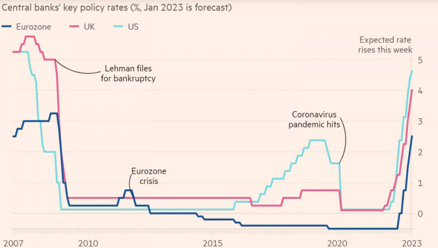 Нефть поставила ловушкуИнстаФорекс - Instaforex, 2 года назад Нефть – индикатор состояния здоровья мировой экономики. Неудивительно, что когда в диагнозах ее дальнейшего развития осторожность сменила эйфорию, Brent сделала шаг назад. Да, улучшение прогноза МВФ по глобальному ВВП на 2023 с 2,7% до 2,9% можно рассматривать как «бычий» фактор для североморского сорта, как и позитивную статистику по китайской деловой активности. Но разве рынок был неготов к хорошим новостям? Эти факторы уже учтены в котировках фьючерсов. К тому же пока инвесторов волнуют другие темы. Многочисленные заседания ведущих центробанков мира, готовых поднять ставки к 15-летним пикам и продолжающим самую агрессивную монетарную рестрикцию, за несколько десятилетий вернули в фокус внимания рынка тему рецессии. Пока события в мировой экономике развиваются как по учебнику: высокая инфляция – ужесточение денежно-кредитной политики – спад в экономике. При таком раскладе обычно страдает спрос на нефть. Так не лучше ли переждать встречи ФРС и других регуляторов, чтобы затем вновь начать покупать Brent? Добавьте к этому возможный сюрприз от ОПЕК+, которая может еще больше сократить добычу, и нависшая над рынком осторожность становится вполне понятной. Динамика ставок ведущих центробанков мира Инвесторы предпочитают уходить от риска, предполагая, что Джером Пауэлл будет использовать «ястребиную» риторику. Закрытие спекулятивных позиций по североморскому сорту, достигших на неделе к 24 января максимальных уровней за 11 недель, лежит в основе отката. Ситуация усугубляется тестом Brent и WTI уровней 100-дневневной скользящей средней, что приводит на рынок технических продавцов. Впрочем, увеличение бэквардейшн с 3 до 60 американских центов за неделю свидетельствует, что успехи «медведей» носят временный характер. Динамика WTI и скользящей средней Действительно, МВФ настроена более оптимистично, чем в 2022. Она считает, что в 2023 мировая экономика будет выглядеть крепче за счет адаптации Европы к энергетическому кризису, открытию Китая, улучшению финансовых условий и ослаблению доллара США. ВВП Поднебесной ускорится с 3% до 5,2%, что станет попутным ветром для сырьевых товаров. И Пекин уже начинает оправдывать выданные ему авансы: в январе китайская деловая активность в обрабатывающей промышленности впервые за 4 месяца выросла выше отметки 50, свидетельствующей о расширении экономики. Давление на нефть оказывают слухи об увеличении поставок российской нефти из портов Балтики на 50% в январе по сравнению с декабрем на фоне растущего спроса в Азии и потенциально более высоких цен. Полагаю, что это временное явление. В дальнейшем экспорт черного золота из РФ будет сокращаться. Технически «медведи» по Brent предпринимают титанические усилия для возвращения котировок в пределы нисходящего долгосрочного торгового канала и отыгрыша паттерна 1-2-3. Тем не менее отбой от зоны конвергенции $83,5-84 или возвращение нефти выше $85,75-86 за баррель следует использовать для покупок. Материал предоставлен компанией InstaForex - www.instaforex.com |