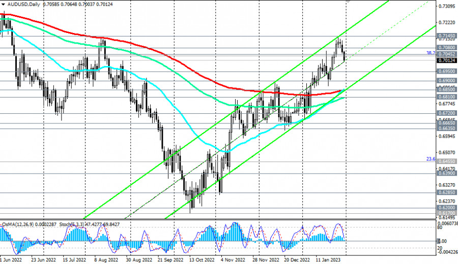 AUD/USD: краткие итоги и ближайшие перспективыИнстаФорекс - Instaforex, 2 года назад Неожиданно слабый отчет Австралийского бюро статистики по розничным продажам, опубликованный в начале сегодняшнего торгового дня, разочаровал участников рынка, ставивших на рост котировок австралийского доллара. Согласно данным отчета, оказавшимся худшим за всю историю своего существования (без учета периода пандемии и момента введения налога с продаж), розничные продажи в Австралии в декабре снизились на -3,9% (при прогнозе падения на -0,3% и против предыдущего значения +1,4%). Розничная торговля оказывает значительное влияние на инфляцию и ВВП, являясь также опережающим индикатором инфляции и перспектив экономического роста. Поэтому он имеет большое значение при оценке перспектив национальной валюты, оказывая также влияние на ЦБ страны при принятии решений по процентным ставкам. Сразу после публикации данного отчета австралийский доллар попал под давление, а пара AUD/USD снизилась, продолжив падение в ходе азиатской торговой сессии и в начале европейской. Так, к текущему моменту пара AUD/USD «просела» на 0,65% (примерно 47 пунктов) с открытия сегодняшнего торгового дня, снизившись к отметке 0.7012 (о динамике пары подробнее см. в AUD/USD: сценарии динамики на 31/01/2023). На динамику AUD/USD также повлиял американский доллар, который сегодня укрепляется, а его индекс DXY растет 4-й день подряд. Сегодня, в последний день месяца начинается заседание ФРС, которое завершится завтра публикацией в 19:00 (GM) решения по процентной ставке. Широко ожидается, что Федеральная резервная система вновь повысит процентную ставку, но не на 75 б.п., и не на 50, как это было в 2022 году, а на 25 б.п. (до 4,75%) и, возможно, заявит о планах ее дальнейшего повышения, но еще более медленными темпами. Покупатели доллара ждут от американского центрального банка продолжения цикла ужесточения монетарной политики. Однако что будет после данного заседания ФРС, пока не совсем ясно. Мнения экономистов на этот счет расходятся. Часть из них считают, что ужесточение монетарной политики ФРС продолжится, а процентная ставка превысит 5,0%, учитывая стабильное состояние национального рынка труда и рост ВВП, при том что инфляция, несмотря на снижение в предыдущие месяцы, остается на недопустимом (для ФРС) высоком уровне, значительно превышающем целевой уровень 2%. Другая часть экономистов считают, что после повышения на данном заседании процентной ставки руководители ФРС возьмут паузу в повышениях, желая оценить результаты всех предыдущих повышений, учитывая также замедление инфляции (на текущий момент годовая потребительская инфляция в США составляет 6.5%, снизившись с 40-летнего пика 9,1%, достигнутого в июне). Также многое в дальнейшей динамике доллара будет зависеть от сопутствующих заявлений руководителей ФРС и от риторики выступления главы американского ЦБ Пауэлла. Напомним, что пресс-конференция по итогам данного заседания ФРС начнётся в среду в 19:30 (GMT), а само решение по процентной ставке будет опубликовано в 19:00 (о событиях недели см. в Важнейшие экономические события недели 30.01.2023 – 05.02.2023). А сегодня участники рынка обратят внимание на публикацию в 14:00 индексов цен на жилье в США (цены на жилье и уровень инфляции взаимосвязаны) и публикацию в 15:00 отчета Conference Board с результатами опроса около 3000 американских домохозяйств, в хо